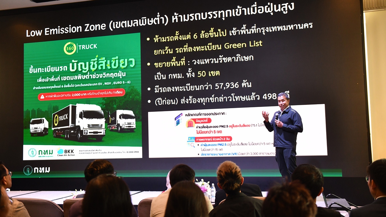 นายชัชชาติ สิทธิพันธุ์ ผู้ว่าฯ กทม. กล่าวปาฐกถาพิเศษ เรื่อง วิสัยทัศน์เมืองอัจฉริยะ เทคโนโลยีเพื่อแก้ไขปัญหา PM2.5 อย่างยั่งยืน ว่า กทม. ใช้เทคโนโลยีต่างๆในการบริหารเมือง และจัดการฝุ่นละอองขนาดเล็กอย่างเป็นระบบ โดยเน้นการตรวจสอบต้นตอ การพยากรณ์ล่วงหน้า และการอำนวยความสะดวกให้ประชาชน อาทิ 1.เทคโนโลยีติดตามและพยากรณ์ ได้แก่ แอปพลิเคชัน AirBKK ใช้แสดงค่าฝุ่นแบบเรียลไทม์ โดยดึงข้อมูลจากสถานีตรวจวัดคุณภาพอากาศทั่วกรุงเทพฯ และมีการยกระดับการพยากรณ์ล่วงหน้าเพื่อให้ประชาชนวางแผนล่วงหน้าได้แม่นยำขึ้น ระบบแจ้งเตือนผ่าน Line Alert และ Cell Broadcast ซึ่งกำลังพัฒนาระบบส่งข้อความเตือนเข้ามือถือประชาชนในพื้นที่ที่มีค่าฝุ่นสูงทันที รวมทั้งดาวเทียมและ AI ใช้ข้อมูลจากดาวเทียมวิเคราะห์การกระจายตัวของฝุ่นและจุดความร้อนผู้ว่าฯ กทม.กล่าวต่อว่า 2.เทคโนโลยีควบคุมแหล่งกำเนิดฝุ่น ได้แก่ Traffy Fondue ให้ประชาชนถ่ายรูปและแจ้งเบาะแสการเผา หรือรถเมล์ควันดำ โดยระบบจะส่งพิกัดไปยังเจ้าหน้าที่เขตเพื่อเข้าระงับเหตุได้ทันที ระบบ CEMS ให้โรงงานขนาดใหญ่ติดเครื่องตรวจวัดการระบายมลพิษแบบต่อเนื่อง เพื่อส่งข้อมูลการปล่อยควันแบบเรียลไทม์มายังส่วนกลาง Low Emission Zone (LEZ) ใช้ระบบคัดกรองรถยนต์ที่ผ่านเข้าเขตมลพิษต่ำ 3.นวัตกรรมด้านสุขภาวะและพื้นที่ ได้แก่ ห้องปลอดฝุ่น ติดตั้งเครื่องฟอกอากาศและระบบแรงดันบวกในศูนย์พัฒนาเด็กเล็กและโรงเรียนสังกัด กทม. 4.การบริหารจัดการเมืองดิจิทัล ได้แก่ ระบบ WFH Platform โดยมีระบบลงทะเบียนเครือข่ายต่างๆ เมื่อค่าฝุ่นพยากรณ์แตะระดับสีแดง จะประสานงานผ่านแพลตฟอร์มเพื่อให้พนักงานทำงานที่บ้าน ลดมลพิษจากการเดินทาง.อ่าน "คอลัมน์หนังสือพิมพ์ไทยรัฐ" ทั้งหมดที่นี่