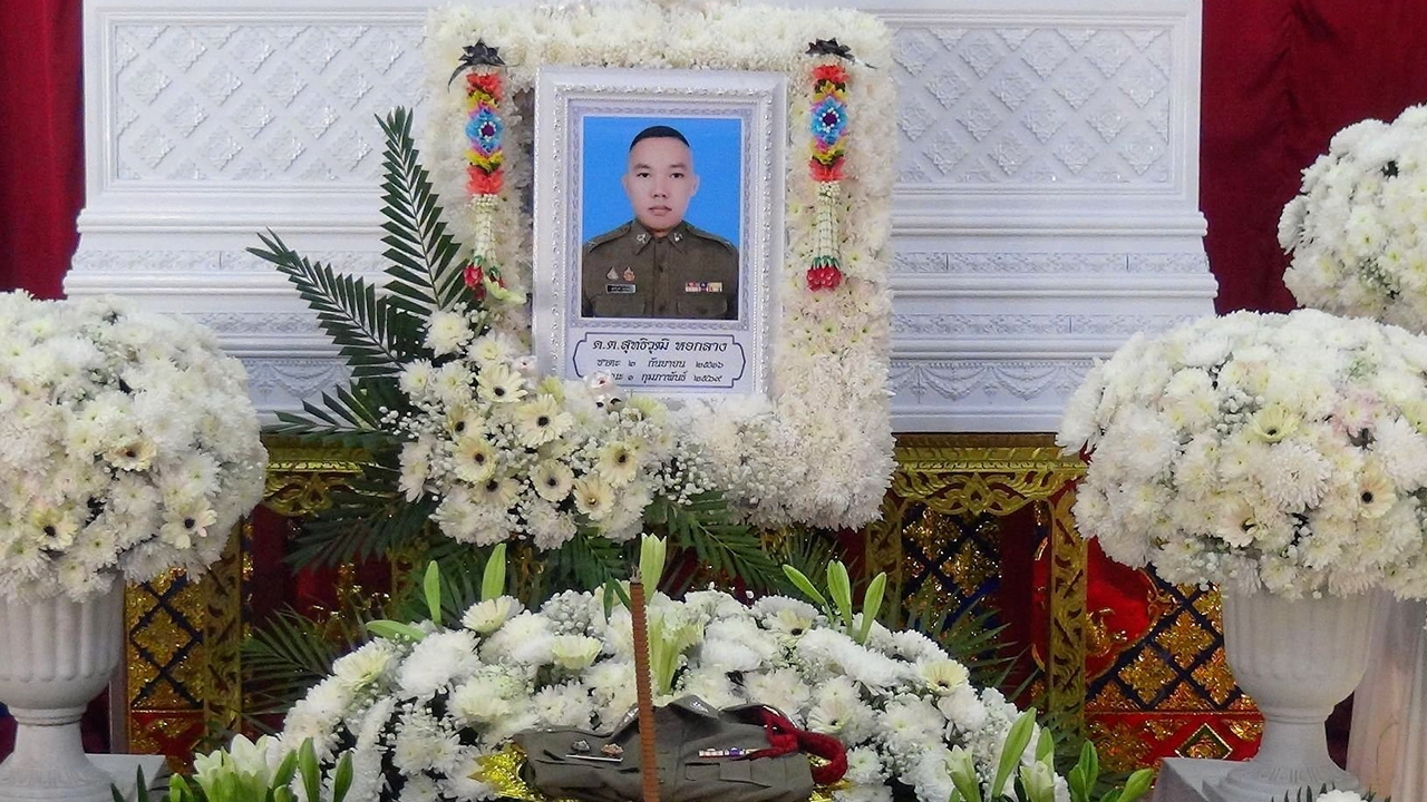 นายดาบ ตม.สมุทรปราการ ถูกแทงดับกลางถนน ขณะผู้ตายขับรถเก๋งเกิดเฉี่ยวชนกับรถ จยย.ที่จุดกลับรถ ลงมาคุยเกิดมีปากเสียงทะเลาะชกต่อยกัน คนร้ายเป็นชายชักมีดแทงที่ราวนมซ้ายและหน้าท้องจนล้มฟุบแล้วเผ่นหนี อาสากู้ภัยช่วยปฐมพยาบาลนำส่ง รพ. ต่อมาเสียชีวิต ขณะที่ตำรวจรู้ตัวผู้ก่อเหตุเป็นวัยรุ่นอยู่ย่านสำโรงใต้เร่งติดตามตัวเหตุ ด.ต.ตม.สมุทรปราการถูกแทงดับรายนี้ เปิดเผยเมื่อเวลา 01.40 น. วันที่ 1 ก.พ. พ.ต.ท.ประสิทธิ์ เมฆษา สว. (สอบสวน) สภ.เมืองสมุทรปราการ รับแจ้งเหตุชายถูกแทงได้รับบาดเจ็บสาหัสบริเวณจุดกลับรถใกล้สถานีรถไฟฟ้าบีทีเอส ช้างเอราวัณ ต.ปากน้ำ ไปตรวจสอบพร้อมด้วยตำรวจฝ่ายสืบสวน สายตรวจ อาสาหน่วยกู้ชีพโรงพยาบาลสมุทรปราการ และอาสาหน่วยกู้ชีพเทศบาลนครสมุทรปราการที่เกิดเหตุเป็นจุดกลับรถกลางถนนพบ ด.ต.สุทธิวุฒิ หอกลาง อายุ 42 ปี ผบ.หมู่ ตม. จ.สมุทรปราการ สภาพหมดสติอยู่บนพื้นมีบาดแผลถูกมีดแทงเข้าที่ใต้ราวนมซ้ายและหน้าท้องรวม 2 แผลเลือดไหลนองพื้น เจ้าหน้าที่กู้ชีพปั๊มหัวใจและให้ยากระตุ้นก่อนนำตัวส่งโรงพยาบาลสมุทรปราการ ใกล้กันพบรถเก๋งฮอนด้า ซีวิค สีเทา ทะเบียน 7 กต 643 กรุงเทพมหานคร เป็นรถของผู้บาดเจ็บจอดอยู่ในสภาพเปิดประตูฝั่งคนขับ ส่วนผู้ก่อเหตุเป็นชาย 1 คนขี่รถ จยย.ฮอนด้า เวฟ 110 สีดำ-แดง ไม่ทราบหมายเลขทะเบียน หลบหนีมุ่งหน้าไปทาง ต.บางด้วน อ.เมืองสมุทรปราการสอบถามพลเมืองดีที่เห็นเหตุการณ์และเข้าไปช่วยห้ามปรามทราบว่า ก่อนเกิดเหตุผู้บาดเจ็บขับรถมุ่งหน้าไปทางสำโรง ขณะเดียวกันรถ จยย.ของคู่กรณีจะกลับรถเกิดเฉี่ยวชนกัน ก่อนที่ทั้ง 2 ฝ่ายจะมีปากเสียงและชกต่อยกัน จากนั้นผู้ก่อเหตุชักมีดแทงผู้บาดเจ็บจนล้มลงก่อนหลบหนีไปขณะที่ตำรวจฝ่ายสืบสวน สภ.เมืองสมุทรปราการ ลงพื้นที่ตรวจสอบที่เกิดเหตุ ระดมกำลังสอบสวนพยานแวดล้อม และตรวจสอบภาพจากกล้องวงจรปิดตามเส้นทางหลบหนี เพื่อติดตามตัวผู้ก่อเหตุมาดำเนินคดีตามกฎหมายต่อไปเช้าวันเดียวกัน พ.ต.อ.จักรกฤช ศรีโรจนากูร ผกก.สภ.เมืองสมุทรปราการ เปิดเผยว่า ด.ต.สุทธิวุฒิ เสียชีวิตแล้วที่โรงพยาบาล เนื่องจากบาดแผลถูกแทงบริเวณใต้ราวนมซ้ายและหน้าท้องเป็นแผลลึกกระทบอวัยวะสำคัญทำให้เสียเลือดมาก ส่วนผู้ก่อเหตุทราบว่าเป็นวัยรุ่นในพื้นที่ขี่รถ จยย.หลบหนีไปทางย่านสำโรงใต้ ตรวจสอบภาพจากกล้องวงจรปิดและสอบปากคำพยานในที่เกิดเหตุทราบว่า ก่อนเกิดเหตุผู้ตายขับรถเก๋งมุ่งหน้าไปทางสำโรง เมื่อมาถึงบริเวณจุดกลับ รถเฉี่ยวชนกับรถ จยย.ของผู้ก่อเหตุ ด.ต.สุทธิวุฒิจอดรถและเปิดประตูลงมาสอบ