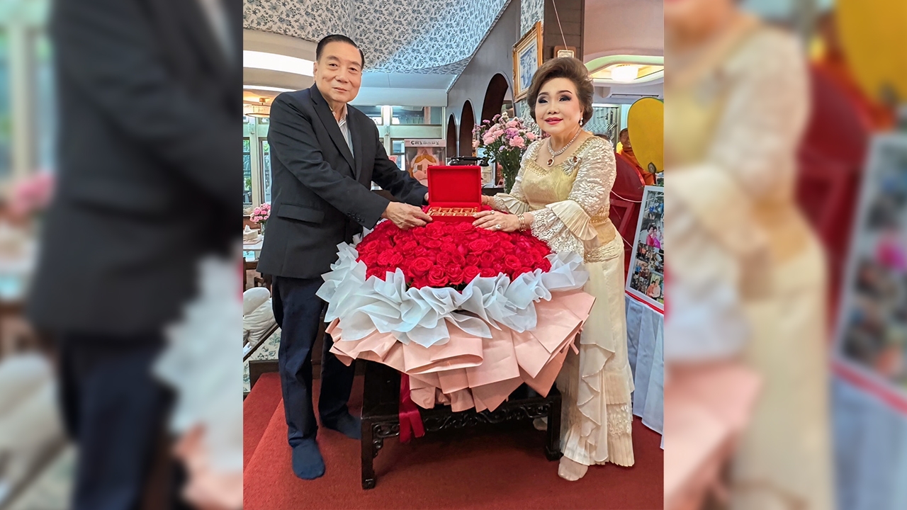 ท่านผู้อ่านโปรดแซ่บ!! แข่งบุญแข่งวาสนานี่มันแข่งกันบ่ได้อีหลีเด้อค่ะเด้อ เบิร์ธเดย์ครบ 77 ปี “ดร.สุมาลี ศรีสุภรวาณิชย์” ได้รับของขวัญเอ๋ยขวัญมาจากคุณสามี “สมศักดิ์ ศรีสุภรวาณิชย์” เป็นทองคำแท่งหนัก 100 บาท และยังมีดอกกุหลาบช่อยักษ์ 199 ดอกวางเสริมเพิ่มความอลัง เป็นการฉลองวันเกิด & วาเลนไทน์ และตรุษจีน มัดรวมกันไปเลยค่ะ..คุณขา ว่าแต่ เห็น “เดอะหนึ่ง บิวตี้เจมส์” ร่วมเฟรมยินดี นี่เผลอๆก็นึกว่า “เถ้าแก่งานหมั้น” ซะงั้น?? คิกๆ. คุณหลีคลิกอ่านคอลัมน์ "ไฮโซรสแซบ" เพิ่มเติม