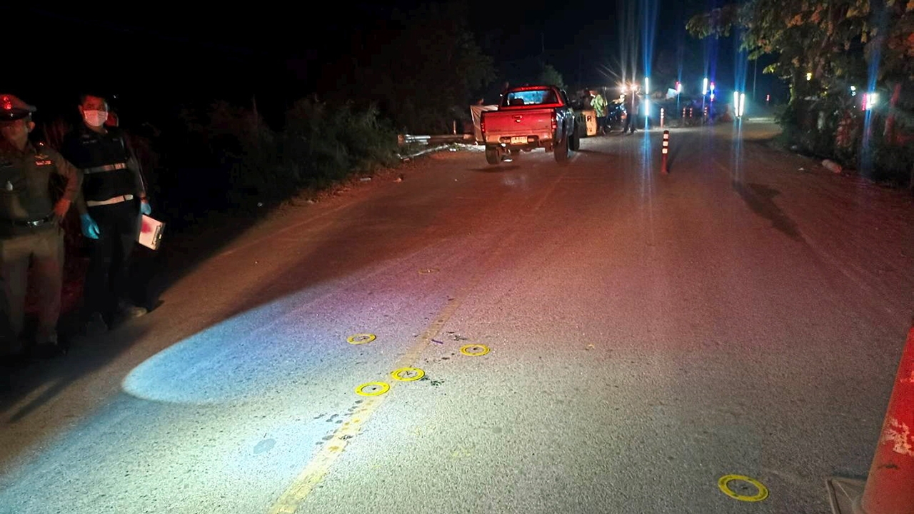 สงกรานต์เดือด จ่า ตชด.ยิงหนุ่มดับ 1 เจ็บอีก 1 คน ขณะขับรถวิ่งผ่านถนนชาวบ้านสาดน้ำเล่นสงกรานต์ กลุ่มผู้ตายวางกรวยยางกั้นถนน จ่ามองไม่เห็นชนกระเด็นทำให้ไม่พอใจชวนเพื่อนขี่รถ จยย.ไล่ตามทุบกระจกรถฝั่งคนขับแตก จอดรถรุมทำร้าย 1 ในนั้นหยิบขวดเบียร์ตีหัวตำรวจแตก จ่าฉุนชัก 9 มม.ยิงร่วงเพื่อป้องกันตัวเหตุจ่า ตชด.ถูกรุมทำร้ายยิงสวนดับ 1 เจ็บอีก 1 คน รายนี้ เปิดเผยเมื่อเวลา 18.30 น. วันที่ 13 เม.ย. พ.ต.ท.สุทิน เห็มสมัคร สว. (สอบสวน) สภ.เมืองกาฬสินธุ์ รับแจ้งเหตุชายถูกยิงได้รับบาดเจ็บที่ริมถนนระหว่างบ้านดงน้อย-บ้านเหล่าสูง ต.ห้วยโพธิ์ ไปตรวจสอบพร้อมด้วย พ.ต.อ.ชลิต ศรีหานู ผกก. สภ.เมืองกาฬสินธุ์ ตำรวจฝ่ายสืบสวน สายตรวจ และอาสาภู้ภัยที่เกิดเหตุพบรถกระบะเชฟโรเลต โคโลราโด สีบรอนซ์ทอง ทะเบียนกาฬสินธุ์ จอดอยู่ข้างทางกระจกข้างคนขับแตก ภายในรถมีคราบเลือดเปื้อนอยู่ที่เบาะคนขับ พบปืน 9 มม.ตกอยู่ในรถ มีเครื่องแบบตำรวจ ตชด.ปักชื่อ จ.ส.ต.อนิรุทธ์ น้อยชื่น ผบ.หมู่ กก.ตชด22 แขวนอยู่ ที่พื้นถนนมีกองเลือด และพบปลอกกระสุน 9 มม. จำนวน 5 ปลอก เจ้าหน้าที่เก็บไว้เป็นหลักฐานส่วนผู้บาดเจ็บนำส่ง รพ.กาฬสินธุ์ ทราบชื่อนายอนุสรณ์ พลายจันทร์ อายุ 38 ปี ถูกยิงที่หน้าท้อง 3 นัด ต่อมาเสียชีวิต นายพลเทพ วิเชียรไชย อายุ 25 ปี ถูกยิงเข้าที่ขาซ้าย 1 นัด และ จ.ส.ต.อนิรุทธ์ น้อยชื่น ตำแหน่ง ผบ.หมู่ กก.ตชด.22 จ.อุบลราชธานี เจ้าของรถกระบะหัวแตกสอบสวนทราบว่า จ.ส.ต.อนิรุทธ์ขับรถกระบะไปตามถนนบ้านดงน้อย-บ้านเหล่าสูง มีชาวบ้านสาดน้ำเล่นช่วงเทศกาลสงกรานต์ตลอดเส้นทาง จังหวะนั้นนายอนุสรณ์และนายพลเทพพร้อมกลุ่มเพื่อนเล่นสาดน้ำแล้ววางกรวยยางกั้นที่ถนน จ.ส.ต.อนิรุทธ์ขับรถชนกรวยล้มแล้วไม่ขอโทษ ทำให้กลุ่มผู้ตายไม่พอใจขี่รถ จยย. 2 คัน รวม 4 คนไล่ตามไปประมาณ 2 กม. แล้วใช้ของแข็งทุบกระจกรถฝั่งประตูคนขับแตก เกิดมีเรื่องชกต่อยกัน 1 ในนั้นใช้ขวดเบียร์ตีหัว จ.ส.ต.อนิรุทธ์จนแตกเลือดไหล ตำรวจหยิบปืนในรถยิงใส่กลุ่มผู้ตายเพื่อป้องกันตัวอ่าน "คอลัมน์หนังสือพิมพ์ไทยรัฐ" ทั้งหมดที่นี่