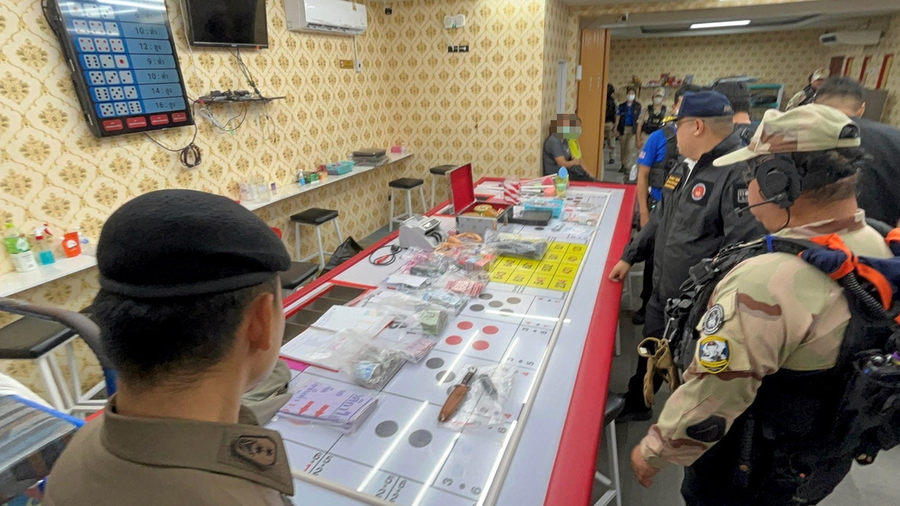 ทีมฝ่ายปกครองเปิดปฏิบัติการ “สิงห์ปราบปรปักษ์” นำกำลังบุกทลายบ่อนการพนันเมืองกรุงเครือข่าย “เฮียตือ” 2 แห่งรวด ผู้ต้องหากว่า 100 คน บ่อนแรกในโกดังซอยหทัยราษฎร์ ตกแต่งภายในอย่างเนี้ยบเย็นฉ่ำ พบอุปกรณ์การเล่นสารพัดตั้งแต่ไฮโลไปยันพนันออนไลน์ รวบนักพนันชายหญิงรวม 63 คน และเงินสดกว่า 3 แสนบาทส่ง สน.นิมิตรใหม่ อีกบ่อนในซอยเสรีไทย 9 จับกุมนักพนันชายหญิงอีก 41 คน พร้อมอุปกรณ์การเล่นและเงินสดกว่า 5 หมื่นบาท ส่ง สน.บึงกุ่ม หัวหน้าชุด “รณรงค์ ทิพย์ศิริ” ยืนยัน ก่อนดำเนินการได้รับการร้องเรียนจากชาวบ้าน ส่งสายลับเข้าไปตรวจสอบจนแน่ชัด เป็นการจัดระเบียบสังคม สร้างความสงบสุขตามนโยบายรัฐบาล ด้าน ผบช.น.เต้น สั่ง ผบก.น.3 และ ผบก.น.4 ตั้งกรรมการตรวจสอบข้อบกพร่อง 5 เสือ สน.บึงกุ่ม และนิมิตรใหม่ ถ้าพบความผิดปล่อยปละละเลยต้องดำเนินการทางวินัยฝ่ายปกครองลุยทลายบ่อน 2 แห่งรวด เปิดเผยขึ้นเมื่อเวลา 21.00 น. วันที่ 25 เม.ย. นายรณรงค์ ทิพย์ศิริ ผอ.ศูนย์ปฏิบัติการบังคับใช้กฎหมายพนักงานฝ่ายปกครอง ร.ต.ต.สิงห์คำ คำยอด ผอ.สำนักการสอบสวนและนิติการ นายเรืองลัก ษณ์ เรืองยังมี ผอ.สำนักอำนวยการกองอาสารักษาดินแดน และนายศักดิ์ชัย โรจนรัตน์ ผอ.ศูนย์ปฏิบัติการบังคับใช้กฎหมายพนักงานฝ่ายปกครอง สำนักการสอบสวน และนิติการกรมการปกครอง สมาชิกกองอาสารักษาดินแดน กองบัญชาการกองอาสารักษาดินแดน บุกจับ 2 บ่อนใหญ่ แหล่งอบายมุขใจกลางเมืองของเครือข่าย “เฮียตือ” ภายใต้ปฏิบัติการ “สิงห์ปราบปรปักษ์”จุดแรกในโครงการหทัยพฤกษ์ มาร์เก็ตเพลส เลขที่ 588/3 ถนนหทัยราษฎร์ แขวงสามวาตะวันตก เขตคลองสามวา กรุงเทพมหานคร ลักษณะเป็นโกดังชั้นเดียวให้เช่า นำกำลังเข้าตรวจสอบภายในสร้างความแตกตื่นให้นักพนันต่างวิ่งหนีแตกฮือเอาตัวรอด เจ้าหน้าที่ต้องตามควบคุมตัวมาสงบสติอารมณ์ ตรวจนับมีนักพนันทั้งหมด 63 คน แบ่งเป็นผู้ชาย 33 คน และผู้หญิง 30 คน พร้อมของกลางอุปกรณ์การเล่นพนันนานาชนิด ทั้งไฮโล ไพ่ป๊อกเด้ง ตู้เกมยิงปลา อุปกรณ์คอมพิวเตอร์ใช้เล่นพนันออนไลน์ ชิป และเงินสด ของกลางกว่า 3 แสนบาท ควบคุมตัวผู้ต้องหาพร้อมของกลางส่งพนักงานสอบสวน สน.นิมิตรใหม่ดำเนินคดีข้อหาร่วมกันจัดให้มีการเล่นพนัน และร่วมกันเล่นการพนันจุดที่สองกำลังชุดปฏิบัติการพิเศษ กรมการปกครอง เดินทางไปภายในซอยเสรีไทย 9 แยก 2-3 แขวงคลองกุ่ม เขตบึงกุ่ม กรุงเทพมหานคร หลังสืบทราบว่าลักลอบเปิดบ่อนพนัน ลักษณะเป็นโกดังชั้นเดียวอยู่ภายในปั๊มน้ำมันเก่า เปิดเป็นร้านซื้อขายรถยนต์มือสอง ด้านในมีที่จอดรถกว้างขวาง และมีตัวอาคา