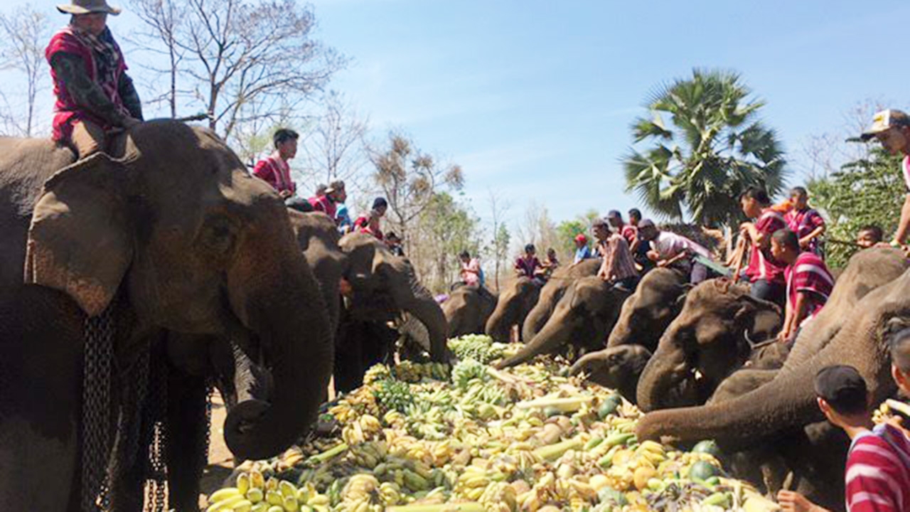 ขันโตกช้าง.แดดร่มลมตกของวันที่ 12 มีนาคม ที่ผ่านมา ช้างกว่า 20 เชือกที่ไปทำงานในเขตพื้นที่ชายแดนไทย-พม่า ทั้งที่บ้านวาเล่ย์ บ้านพะยอ บ้านมอเกอร์ และรวมถึงช้างที่ไปฝึกและทำงานในจังหวัดกระบี่ 7 เชือก ต่างพากันเดินเท้ามุ่งหน้าสู่หมู่บ้านปูเต้อ เพื่อเตรียมร่วมงานวันช้างไทยในวันรุ่งขึ้นบ้านปูเต้อ...หมู่บ้านเล็กๆในเขตอำเภอแม่สอด จังหวัดตาก อาจไม่ใช่สถานที่ท่องเที่ยว ที่ถูกปักหมุดให้เป็นจุดหมายปลายทางของนักท่องเที่ยวและคนเดินทางมากนัก แต่ 7 ปีมาแล้ว ที่ทุกวันช้างไทย 13 มี.ค. จะมีผู้คนจากที่ต่างๆแม้แต่ชาวต่างชาติ เดินทางมาที่นี่ เพื่อร่วมพิธีสู่ขวัญช้างและเลี้ยงขันโตกให้กับช้าง ซึ่งเปรียบเสมือนสัตว์คู่บ้านคู่เมืองของคนไทยมานานหลายร้อยปีและหากยังจำกันได้ เมื่อ 20 ปีก่อน ช้างพังโม่ตาลา ที่เหยียบกับระเบิดบริเวณชายแดนไทย-เมียนมา จนเป็นข่าวสะเทือนใจคนรักช้างมาจนถึงวันนี้ ก็เป็นช้างที่ไปจากหมู่บ้านปูเต้อ...แห่งนี้ พี่หน่อง...ธมลวรรณ เจริญวงศ์พิสิฐ ผอ.การท่องเที่ยวแห่งประเทศไทย สำนักงานตาก ชักชวนให้ไปร่วมงานวันช้างไทยที่นี่ โดยบอกว่า ยังมีวิถีวัฒนธรรมแบบดั้งเดิมของคนปกาเกอะญอที่ผูกพันกับช้างให้ได้สัมผัส แม้นับวัน วิถีคนกับช้างจะเริ่มเปลี่ยนแปลงไป และคนไทยไม่ได้ใกล้ชิดกับช้างเหมือนในอดีตงานวันช้างไทย ที่บ้านปูเต้อ เริ่มต้นในช่วงสายของวันที่ 13 มี.ค. ช้าง 32 เชือกตั้งแถวบริเวณโรงสีปูเต้อ ซึ่งอยู่ห่างจากวัดปูเต้อ ราว 1 กิโลเมตร นำขบวนโดยนักเรียนจากโรงเรียนบ้านปูเต้อ เด็กผู้หญิงใส่ชุดประจำเผ่าปกาเกอะญอที่เรียกว่า เชวา ซึ่งเป็น ชุดที่ใส่ได้เฉพาะเด็กสาวที่ยังไม่แต่งงานเท่านั้น เดินนำหน้าขบวน ส่วนเด็กผู้ชายก็ใส่เสื้อปกาเกอะญอสีแดง ตามด้วยแถวของชาวบ้านที่พากันแต่งกายอย่างสวยงามมาร่วมเฉลิมฉลองให้กับช้าง ที่เปรียบเสมือนสมาชิกอีกส่วนหนึ่งในครอบครัวของพวกเขา กมล อุบลอ่อน หรือที่ชาวบ้านเรียกกันว่า หมอหนุ่ย อาสาสมัครมูลนิธิช้าง เล่าให้ฟังว่า คนปูเต้อซึ่งเป็นชาวปกาเกอะญอมีวัฒนธรรมและวิถีการเลี้ยงช้างแบบภูมิปัญญาดั้งเดิมที่สืบทอดกันมา คือ เลี้ยงช้างตามธรรมชาติ ให้ช้างหากินในป่า ซึ่งปัจจุบันปัญหาที่เกิดกับช้างก็มีมากขึ้น ทั้งเรื่องของแหล่งอาหารที่ลดลงเรื่อยๆ ทั้งความคิดของหน่วยราชการที่จ้องแต่จะขอดูตั๋วช้าง ข้อสันนิษฐานของภาครัฐ คือ ตั้งข้อกล่าวหาว่าการมีช้างของชาวบ้านเป็นเรื่องผิดไว้ก่อน นอกจากนี้ยังไม่ให้เอาช้างไปเลี้ยงในป่าสงวน ที่ดินของชาวบ้าน บางทีเขาก็ไม่ให้เอาช้างไ