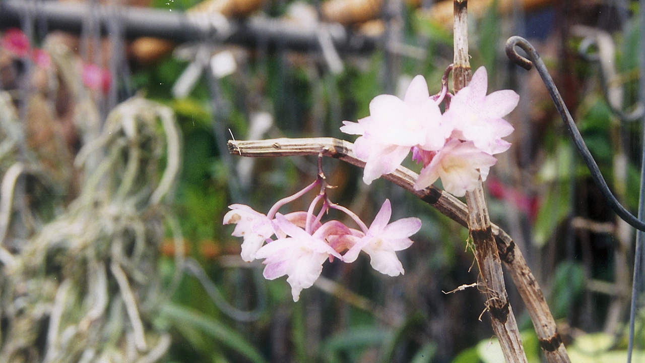 เอื้องสายสี่ดอก หรือ DENDROBIUM CUMULATUM LINDL. อยู่ในวงศ์ ORCHID ACEAE เป็นกล้วยไม้อิงอาศัยที่มีการเจริญทางด้านข้าง ลำต้นกลมยาว ปลายเรียวแหลม ใบเดี่ยว ออกเรียงสลับเป็นรูปใบหอกแกมรูปแถบปลายใบแหลม โคนมน ดอก ออกเป็นช่อแบบกระจะตามข้อลำต้นใกล้ปลายยอด แต่ละช่อประกอบด้วยดอกย่อย 3-5 ดอก หรืออาจมีมากกว่านั้นอยู่ที่ความสมบูรณ์ของต้น กลีบเลี้ยงและกลีบดอกเป็นรูปไข่กลับ เป็นสีชมพูอ่อน กลีบปากเป็นสีครีม ฝาครอบเกสรตัวผู้เป็นสีเหลือง ดอกบานเต็มที่กว้างประมาณ 1.5 ซม. เวลามีดอกช่อดอกจะห้อยลงดูสวยงามและน่ารักมาก ดอกออกช่วงระหว่างเดือนพฤษภาคมต่อเนื่องไปจนถึงเดือนมิถุนายนของทุกปี ขยายพันธุ์ด้วยการแยกต้นที่แตกขึ้นจากเหง้าหรือแยกต้นที่แตกออกจากลำต้นบริเวณข้อ มีแหล่งที่พบคือ เชียงใหม่ แม่ฮ่องสอน ตราด สุราษฎร์ธานี และพังงา มีชื่อเรียกอีกคือ เทียนทอง และ เทียนพญาอินทร์สรรพคุณทางสมุนไพร ตำรายาพื้นบ้านอีสานระบุว่า ลำต้นของ “เอื้องสายสี่ดอก” กะจำนวนมากน้อยตามต้องการต้มน้ำเดือดดื่มขณะอุ่นต่างน้ำเป็นประจำ จะเป็นยาดีช่วยแก้อาการหืดหอบได้เด็ดขาดนัก โดยเฉพาะในช่วงฤดูหนาวอาการหืดหอบจะกำเริบรุนแรงขึ้นปัจจุบันต้น “เอื้องสายสี่ดอก” มีขายที่ ตลาดนัดไม้ดอกไม้ประดับ สวนจตุจักร ทุกวันพุธ-พฤหัสฯ บริเวณโครงการ 24 แผง “คุณหล้า-คุณโอม” ราคาสอบถามกันเอง เหมาะจะปลูกเพื่อชมความสวยงามของดอกตามฤดูกาล และปลูกเพื่อใช้ประโยชน์เป็นสมุนไพรตามที่ระบุข้างต้นได้คุ้มค่ามากการปลูก นิยมปลูกลงกระถางกล้วยไม้แบบแขวน ใช้เครื่องปลูกคือ อิฐมอญ ถ่านดำ ทุบรองก้นกระถาง 1 ใน 3 ของความสูงขอบกระถาง จากนั้นนำต้นลงปลูกแล้วปิดทับส่วนบนที่เหลือด้วยขุยมะพร้าวแห้งให้แน่น ใช้ลวดอ่อนยึดต้นให้ดี นำไปแขวนที่แจ้ง มีลมพัดโกรกตลอดทั้งวัน รดน้ำเช้าเย็น บำรุงปุ๋ยฉีดอาทิตย์ละครั้ง จะมีดอกดกสวยงามเมื่อถึงฤดูกาลครับ.“นายเกษตร”