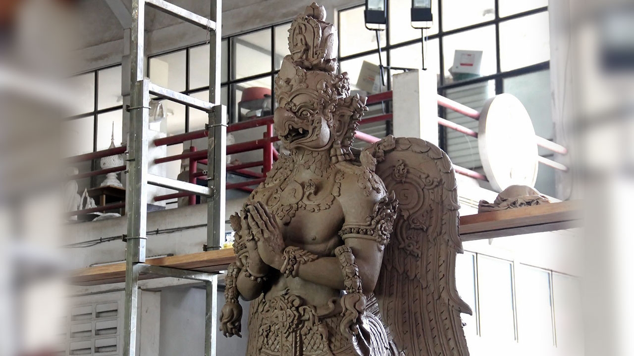 เตรียมถอดแบบหุ่นปั้น “พระนารายณ์” 1 ในองค์มหาเทพ ประดับพระเมรุมาศ พร้อมทำพิมพ์หล่อไฟเบอร์กลาส ขณะที่สัปดาห์หน้า หุ่นปั้นเสร็จอีกหลายชิ้น ทั้งครุฑ เทวดายืน ท้าวจตุโลกบาล 3 องค์ หัวหน้ากลุ่มประติมากรรม สำนักช่างสิบหมู่ ปลื้มได้ช่างปั้นอิสระ นักเรียน นักศึกษา ร่วมเป็นช่างจิตอาสา ช่วยจนงานรุดหน้าไปตามแผนกรมศิลปากรแจ้งความคืบหน้าการจัดสร้างพระเมรุมาศ ในงานพระราชพิธีถวายพระเพลิงพระบรมศพ พระบาทสมเด็จพระปรมินทรมหาภูมิพล อดุลยเดช อย่างต่อเนื่อง โดยเมื่อวันที่ 2 เม.ย.นายประสพสุข รัตน์ใหม่ หัวหน้ากลุ่มประติมากรรม สำนักช่างสิบหมู่กรมศิลปากร เปิดเผยว่า ในส่วนงานประติมากรรมประกอบพระเมรุมาศ ล่าสุด ได้ส่งเทวดานั่งและพระนารายณ์ หนึ่งในองค์มหาเทพที่ปั้นขึ้นหุ่นแล้วเสร็จไปยังโรงปั้นหล่อประติมากรรมท้องสนามหลวง เพื่อรอการจัดทำพิมพ์ และหล่อไฟเบอร์กลาสเข้าสู่กระบวนการลงสี ทำให้ขณะนี้การปั้นองค์มหาเทพแล้วเสร็จไปแล้ว 2 องค์ คือ พระพรหมและพระนารายณ์ ยังเหลือพระอินทร์และพระศิวะที่อยู่ระหว่างการตกแต่งรายละเอียดของลวดลายต่างๆ ส่วนงานปั้นที่คาดว่าจะเสร็จส่งไปจัดทำพิมพ์ในสัปดาห์หน้า ได้แก่ ครุฑ เทวดายืน และท้าวจตุโลกบาล 3 องค์ ประกอบด้วย ท้าวกุเวร ท้าวธตรฐ และท้าววิรุฬหก ส่วนท้าววิรูปักษ์ยังอยู่ในขั้นตอนตกแต่งเครื่องประดับและจัดวางตำแหน่งของเครื่องทรงต่างๆนายประสพสุขกล่าวอีกว่า นอกจากนี้ยังมีงานปั้นที่อยู่ในขั้นตอนของการใส่รายละเอียดของลวดลายต่างๆ เพื่อให้มีความสมจริงโดยเฉพาะสัตว์มงคลประจำทิศ ได้แก่ ราชสีห์ สิงห์ โดยสัตว์มงคลต่างๆ ช่างปั้นจะศึกษารูปแบบทั้งจากหนังสือวรรณคดีไทย ภาพเขียนและจากประติมากรรมของวัดต่างๆ พร้อมกับใส่จินตนาการให้ดูเหมือนมีชีวิตซึ่งสัตว์มงคลแต่ละชนิดจะปั้นให้ดูมีพลังพร้อมกระโดดไปข้างหน้า ซึ่งขณะนี้ได้ช่างปั้นอิสระ นักเรียนนักศึกษาที่ได้รับการคัดเลือกชุดที่ 2 เข้ามาช่วยงาน ทั้งการ ผสมดินเพื่อขึ้นรูป เป็นผู้ช่วยช่างตกแต่งลวดลายต่างๆ ส่งผลให้งานมีความคืบหน้าเป็นไปตามแผนงานที่กำหนดไว้ คาดว่าในสัปดาห์หน้าจะส่งงานปั้นที่ขึ้นรูปที่สำนักช่างสิบหมู่ อ.ศาลายา จ.นครปฐม ไปยังโรงปั้นหล่อประติมากรรมท้องสนามหลวงได้หลายชิ้นต่อมาผู้สื่อข่าวได้รับการเปิดเผยจาก นายเสกสรร กาวินชัย ครูเชี่ยวชาญ โรงเรียนแจ้ห่มวิทยา จ.ลำปาง ว่า นักเรียนที่เข้ามาร่วมเป็นจิตอาสางานฉลุและขัดตกแต่งไม้ พระโกศจันทน์และหีบพระบรมศพจันทน์ มีตั้งแต่ชั้น ม.2-ม.4 จำนวน 15 คน ซึ่งได้ผู้ใหญ่ใจดีใน