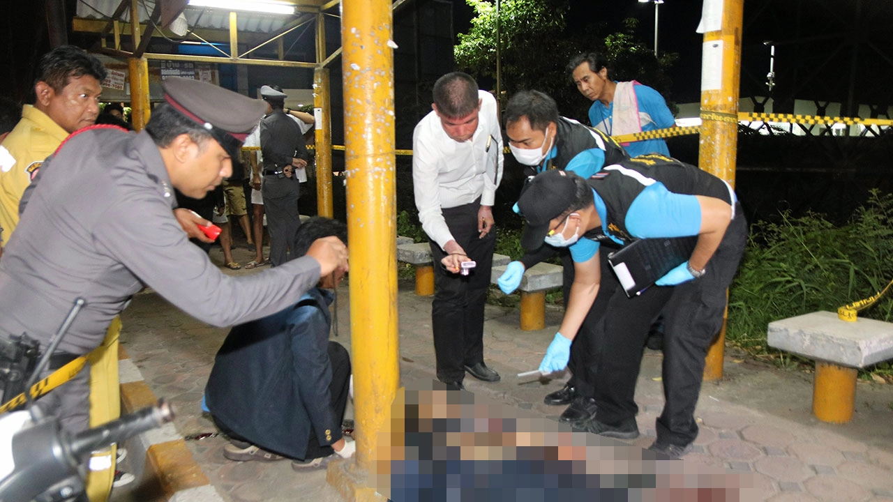เจ้าหน้าที่ชันสูตรศพนายธนพล ธนากรปิ่นทอง อายุ 21 ปี นักศึกษามหาวิทยาลัยราชภัฏพระนคร ถูกคนร้ายยิงเสียชีวิตบริเวณป้ายรถเมล์ ปากซอยลำลูกกา 21 ถนนลำลูกกา หมู่ 18 ต.คูคต อ.ลำลูกกา จ.ปทุมธานี.