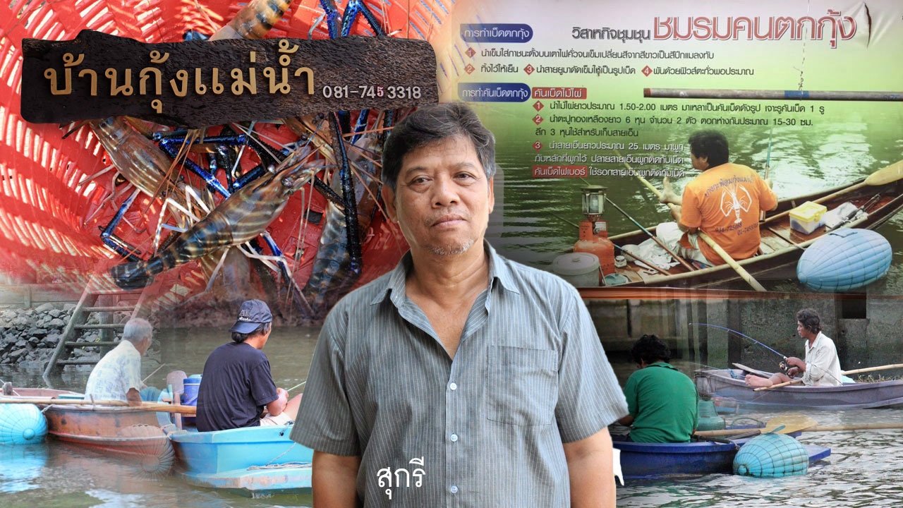 สุกรี กลิ่นมาลี อายุ 60 ปี รู้จักกันในชื่อตาจืด เป็นคนตำบลบางกะพ้อม อำเภออัมพวา จังหวัดสมุทรสงคราม เมื่อก่อนเป็นเซียนตกกุ้ง แต่วันนี้เป็นเจ้าของรีสอร์ต ชื่อบ้านกุ้งแม่น้ำ ริมแม่น้ำแม่กลองชื่อรีสอร์ตตั้งขึ้น เพราะผูกพันกับวิถีชีวิต ที่หากินมากับกุ้งแม่น้ำสุกรีความรู้แค่ ป.6 ทำงานมาแล้วสารพัด เป็นกรรมกรเหมืองแร่ดีบุก ที่พังงา เมื่อยังตั้งหลักไม่ได้ ก็กลับมาบ้านบางกะพ้อม แม่ขอเมียให้ แต่งให้แล้ว ให้ที่ 200 ตารางวา ปลูกกระต๊อบอยู่มีเมียแล้วแต่ยังไม่มีอาชีพเลี้ยงครอบครัว บ้านอยู่ใกล้ริมแม่น้ำแม่กลอง พอมีพื้นฐานตกกุ้งแม่น้ำอยู่บ้าง ก็เริ่มอาชีพตกกุ้ง ตกได้มาก ก็ขาย ได้น้อยก็แค่พอกินตอนตกกุ้งใหม่ๆขายกิโลกรัมละ 40 บาท สุกรีตกจริงจังอยู่ห้าปี ได้กุ้งเท่าไหร่ ก็เอาไปขายที่ตลาดแม่กลอง“ตอนนั้นยังไม่มีคนนิยมกุ้งแม่น้ำ ไม่มีพ่อค้ามารับซื้อถึงที่” สุกรีว่านอกจากกุ้งที่ตัวเองตกได้ ก็ยังรับฝากกุ้งของเพื่อนไปขาย เขาแบ่งให้เจ้าละ 5 บาท ทำอย่างนี้อยู่สองสามปี ก็เจอปัญหากุ้งน้ำหนักขาด จึงตัดสินใจเปลี่ยนจากรับฝาก มาเป็นรับซื้อเองถึงเวลานี้ กุ้งแม่น้ำกิโลกรัมละ 200 บาท แต่การขายแค่ในสมุทรสงคราม ก็เจอปัญหาขายไม่ได้ กุ้งตกค้าง ดองไว้สามวันก็เน่า ต้องเอาไปเททิ้งน้ำ จึงต้องขยับขยายไปขายถึงปทุมธานี สุดท้ายไปส่งขาย กรุงเทพฯสุกรีเอากุ้งไปครั้งละ 120-150 กิโลกรัม ขายกิโลกรัมละ 500 บาท ส่งกุ้งได้ไม่กี่ปี ก็มีเงินปลูกบ้านสบายๆอยู่ได้ไม่นาน ถึงปี 2541 ฟองสบู่แตก ส่งกุ้งไปแต่ละร้าน ก็ติดเงิน รวมแล้วนับล้าน สุกรีหมดเนื้อหมดตัว กลับมานั่งอยู่ตรงปากประตูบ้าน ปรับทุกข์กับเมีย เมียไม่พูดอะไร เอาแต่นั่งร้องไห้“ตัดสินใจเลิกซื้อกุ้ง” สุกรีว่า “คนตกกุ้งมาจอดเรืออยู่เต็มท่าน้ำหน้าบ้าน มาอ้อนวอนให้ซื้อ บอกไม่รู้จะซื้อไปขายใคร เพราะขายไม่ได้จริงๆ”เพื่อนๆคนตกกุ้งแม่น้ำก็อับจน พ่อค้าซื้อกุ้งแม่น้ำเองก็อับจน สุกรีเดินขึ้นบ้าน นอนก่ายหน้าผากคิดว่าจะทำมาหากินอะไรยังคิดอะไรไม่ออก ลุกขึ้นเดินไปที่ตุ่มเลี้ยงปลาแรด...สุกรีเลี้ยงปลาแรดมาสิบปี ไม่ได้เลี้ยงไว้ขาย เลี้ยงไว้ดูเล่น เอาเหยื่อไปให้ปลาเผลอพูดกับปลา “มึงไม่คิดจะช่วยกูบ้างเหรอ อยู่กับกูมาตั้งหลายปี”พูดแบบสติแตกกับปลาไปแล้ว คิดขึ้นมาได้ ปลายังอยู่ในตุ่มได้ ถ้าเอากุ้งมาขังไว้ 15 วันไม่ตาย เราก็ซื้อกุ้งแม่น้ำไปขายต่อได้เห็นทางออกอาชีพแล้ว สุกรีขอเงินเมีย 2,500 บาท เมียถามจะเอาเงินไปทำอะไร“จะลองทำบ่อเลี้ยงกุ้ง” สุกรีว่า “ถ้าหากสำเร็จ งานนี้รวย”สุกรีออกไปซื้ออิ