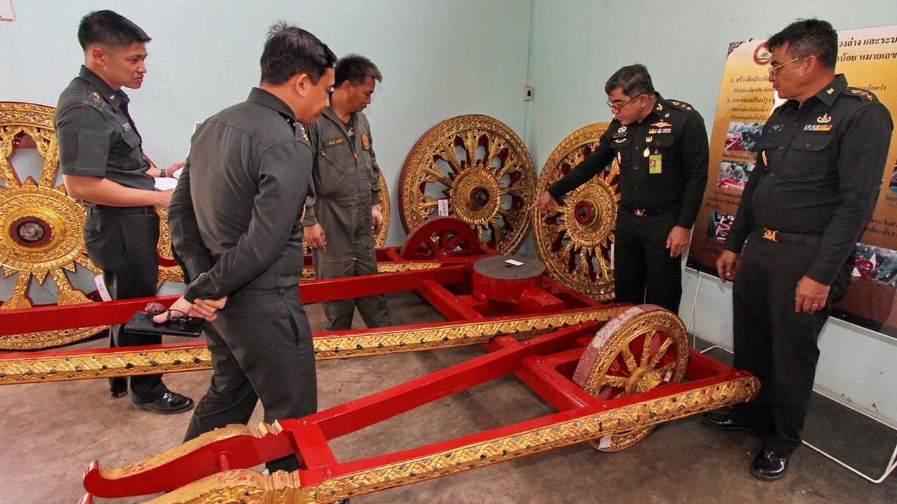 นายทหารกรมสรรพาวุธทหารบก เข้าตรวจสอบคุณภาพการซ่อม-บูรณะระบบขับเคลื่อน ระบบโครงสร้างราชรถ ราชยาน พระยานมาศ ในริ้วขบวนพระอิสริยยศ พระราชพิธีถวายพระเพลิงพระบรมศพพระบาทสมเด็จพระปรมินทรมหาภูมิพลอดุลยเดช ยืนยันสมบูรณ์ไปกว่าร้อยละ 95 ด้าน รมต.ประจำสำนักนายกฯมั่นใจ ดอกไม้จันทน์มีเพียงพอ หลังมหาวิทยาลัยอาสาจัดทำแห่งละ 1 ล้านดอก และเตรียมหารือระบบการวางดอกไม้จันทน์จากการที่คณะกรรมการอำนวยการจัดงาน พระราชพิธีถวายพระเพลิงพระบรมศพพระบาทสมเด็จพระปรมินทรมหาภูมิพลอดุลยเดช มอบหมายให้กรมสรรพาวุธทหารบก (สพ.ทบ.) ดำเนินการจัดซ่อม-บูรณะ ระบบขับเคลื่อน ระบบโครงสร้างราชรถ ราชยาน พระยานมาศ และเกรินบันไดนาค ที่ใช้ในริ้วขบวนพระอิสริยยศ พระราชพิธีถวายพระเพลิงพระบรมศพพระบาทสมเด็จพระปรมินทรมหาภูมิพลอดุลยเดชนั้นผู้สื่อข่าวรายงาน เมื่อวันที่ 24 เม.ย. ที่กองโรงงานช่างแสง ศูนย์อุตสาหการสรรพาวุธ กรมสรรพาวุธทหารบก (กชส.ศอ.สพ.ทบ.) พล.ท.อาวุธ เอมวงศ์ เจ้ากรมสรรพาวุธทหารบก มอบหมายให้คณะกรรมการตรวจสอบและทดสอบการใช้งานผลการซ่อมบูรณะราชรถฯ ที่นำโดย พ.อ.ธวัชชัย ปารีย์ นายทหารปฏิบัติการประจำกรมสรรพาวุธทหารบก พ.อ.วิฑูรย์ ทาเกตุ ผอ.โรงงานผลิตอาวุธ กชส.ศอ.สพ.ทบ. พ.อ.พงศ์พัฒน์ เจริญพิบูลย์ รอง ผอ.กชส.ศอ.สพ.ทบ. พ.ท.ชาติวัฒน์ สิริพราหมณกุล หน.แผนกกระสุนที่ 1 กชส.ศอ.สพ.ทบ. ร่วมกันตรวจสอบคุณภาพชิ้นส่วนสำคัญในระบบช่วงล่าง ระบบขับเคลื่อนของพระมหาพิชัยราชรถ หมายเลข 9780 จำนวนกว่า 50 ชิ้น ระบบช่วงล่างและอุปกรณ์ล้อประดับ ราชรถน้อยหมายเลข 9784 รวม 50 ชิ้น อุปกรณ์บังคับเลี้ยว ราชรถน้อย หมายเลข 9784 ที่ผ่านการซ่อมปรับปรุงเป็นที่เรียบร้อย พร้อมกันนี้ยังร่วมกันตรวจสอบโครงสร้างงานไม้ ระบบเพลาของล้อประดับราชรถ หมายเลข 9780 และ 9784 ที่จัดทำขึ้นใหม่ และงานปรนนิบัติบำรุงจนล้อประดับราชรถหมายเลข 9782/9783 โดยใช้เวลาตรวจสอบอย่างละเอียดกว่า 2 ชั่วโมงพ.อ.ธวัชชัย ปารีย์ ประธานคณะกรรมการฯ กล่าวว่า ผลการตรวจสอบชิ้นส่วนสำคัญต่างๆ ของราชรถ พบว่ามีความสมบูรณ์แบบกว่าร้อยละ 95 อาจจะมีจุดต้องปรับแก้บ้างเล็กน้อยและแจ้งให้ช่างทราบแล้ว เช่น ในส่วนของชุดบังคับเลี้ยวราชรถน้อยหมายเลข 9784 ให้ปรับจุดบังคับเลี้ยวเพิ่มขึ้นเล็กน้อย ทั้งนี้ การตรวจสอบจะทำอย่างละเอียดจนมั่นใจว่าอุปกรณ์ที่จะนำไปประกอบกับราชรถจะมีสมบูรณ์แบบมากที่สุด คาดว่าเมื่อปรับแก้แล้วเสร็จในราวเดือน พ.ค. จะสามารถนำไปประกอบกับราชรถองค์จริงที่พิพิธภัณฑสถานแห่งชาติได้อีกด้านหนึ่ง ที่โรงพลศึกษา โรงเรียนสรรพาวุธ สพ.ทบ. พ.