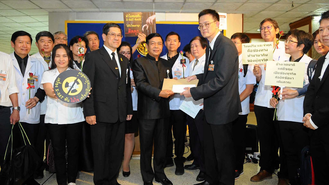 ที่ศูนย์บริการประชาชน สำนักปลัดสำนักนายกรัฐมนตรี ทพ.สัมฤทธิ์ จิโรจน์วณชชา แกนนำเครือข่ายทันตแพทย์อาสาและ ทพ.สัมฤทธิ์ วิโรจน์วณิชชา ทันตแพทย์เชียวชาญด้านทันตสาธารณสุข พร้อมสมาชิกกว่า 50 คน ยื่นหนังสือถึง พล.อ.ประยุทธ์ จันทร์โอชา นายกรัฐมนตรี เพื่อคัดค้าน พ.ร.บ.นิวเคลียร์เพื่อสันติ พ.ศ.2559 โดยขอให้ถอนร่างกฎหมายการควบคุมเครื่องเอกซเรย์ฟัน โดย ทพ.สัมฤทธิ์กล่าวว่า กฎหมายดังกล่าว กำลังสร้างปัญหาใน การตีความ โดยเฉพาะเรื่องเครื่องเอกซเรย์ขนาดเล็ก ที่จะถูกควบคุมกำกับดูแลโดยกระทรวงวิทยาศาสตร์และเทคโนโลยี (วท.) ทั้งที่ผ่านมาเครื่องเอกซเรย์ทันตกรรมอยู่ในการดูแลของกรมวิทยาศาสตร์การแพทย์ กระทรวงสาธารณสุข ขณะเดียวกันกฎหมายได้กำหนดให้มีเจ้าหน้าที่ความปลอดภัยทางรังสีในการดูแลควบคุมเครื่อง ซึ่งจะทำให้สถานพยาบาลขนาดเล็กมีค่าใช้จ่ายเพิ่มขึ้น นอกจากนี้ ความผิดยังรุนแรงโทษถึงขั้นจำคุก 5 ปี ปรับ 500,000 บาท