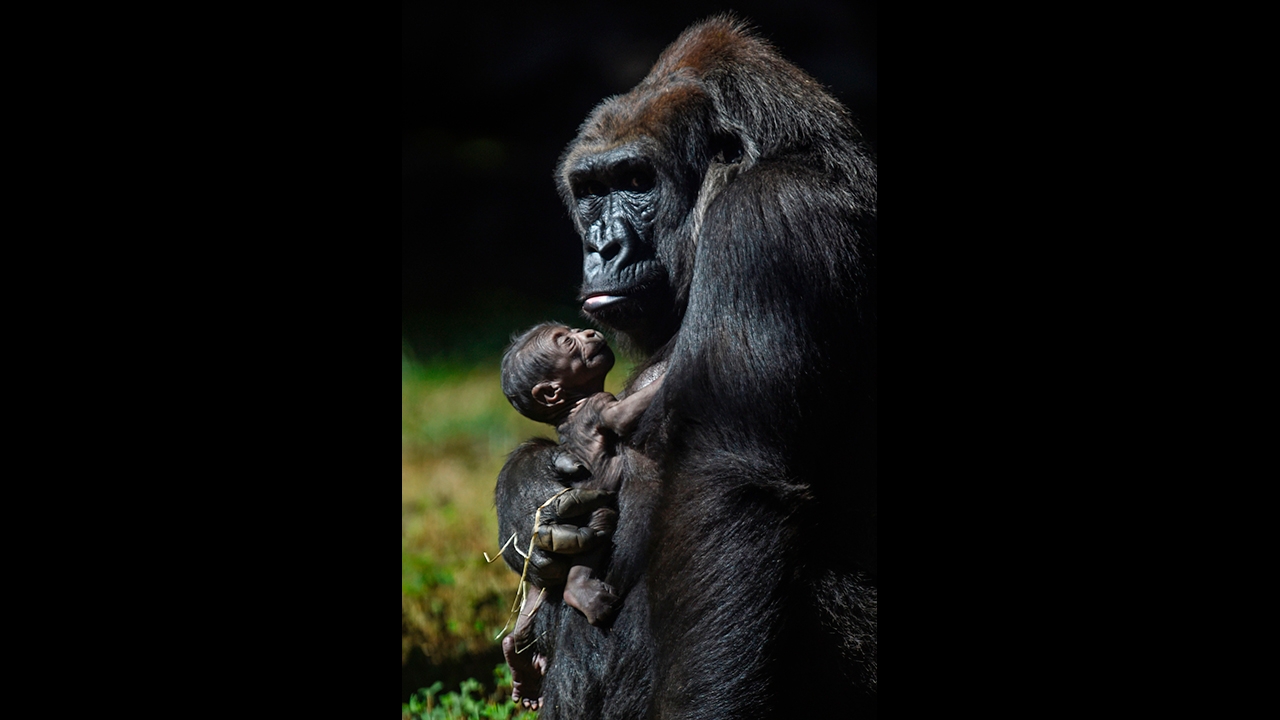 แม่กอริลล่ากอดลูกน้อยไว้แนบดวงใจ