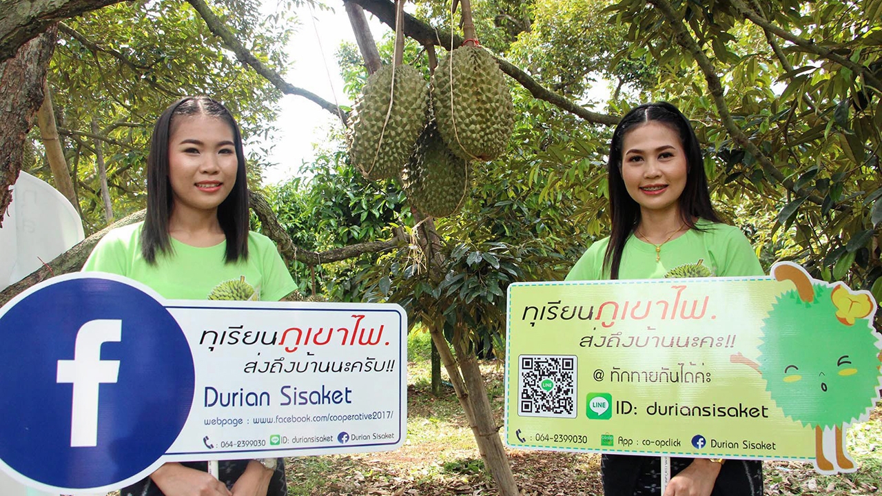 จากความทุกข์ชาวสวนทุกๆปีช่วงผลไม้ทยอยออก แต่ไร้ช่องทางระบายเน่าเสียหายมากมาย...!แต่ยุคนี้ไฮเทค ทุเรียน ที่ได้รับฉายา “ราชาแห่งผลไม้” กำลังออก ส่วนใหญ่จึงตามกระแสเปิดเว็บขายตรงถูกจับตามองเวลานี้ ทุเรียนชื่อดัง จ.ศรีสะเกษ จาก อ.กันทรลักษ์ อ.ขุนหาญ และ อ.ศรีรัตนะ ด้วยคุณสมบัติของดินในแหล่งภูเขาไฟโบราณย่อยสลายผุพังผสมกับหินบะซอลต์ ทำให้มีธาตุอาหารสมบูรณ์ทุเรียนจังหวัดโซนอีสานแห่งนี้ จึงมีชื่อเสียงด้านรสชาติอร่อยลิ้น ปีการผลิต 2559/60 นี้ มีพื้นที่ปลูกทั้งสิ้น 5,097 ไร่ ให้ผลผลิตแล้ว 2,891 ไร่ แต่ถัวเฉลี่ยทั้งหมดน่าจะอยู่ที่ 4,500 ตัน หรือเฉลี่ย 1,548 กก./ไร่นายสุพจน์ วัฒนวิเชียร สหกรณ์ จ.ศรีสะเกษ เผยว่า โดยเฉพาะทุเรียนพันธุ์หมอนทองที่นิยมปลูกจะให้ผลเต็มที่ช่วงเดือนมิถุนายน ทุกๆปีในงานเทศกาลเงาะ ทุเรียนและของดีศรีสะเกษ ชาวสวนจึงแห่นำไปจำหน่ายแต่ปีนี้พิเศษสุดตรงที่ แบ่งเกรดทุเรียนไว้ 2 ประเภท เริ่มจาก ทุเรียนคุณภาพดี หาซื้อได้ที่หน้าสวนและในงาน แต่ถ้านำไปขายต่อ สั่งได้ทางสหกรณ์จังหวัดที่เป็นเครือข่ายทุกจังหวัด เริ่มตั้งแต่ 2 ตันขึ้นไป ราคากิโลกรัมละ 130 บาทที่พิเศษสุดมีทุเรียนเกรด พรีเมียม เปิดขายทางออนไลน์เป็นปีแรก โดยผลผลิตมาจากต้นทุเรียนที่ปลูกมาเกิน 10 ปี และได้มาตรฐาน GAP ผลแก่ประมาณ 85% มีพูไม่น้อยกว่า 4 พู พูละ 3 เม็ด น้ำหนัก 2.8-3.2 กก.ด้านรสชาติดี เนื้อสัมผัสละเอียดนุ่มไม่ติดฟัน รูปร่างก็สวยงาม ประเภทนี้ราคาลูกละ 800 บาท 2 ลูก 1,500 บาท พร้อมติด QR-Code ที่ลูกทุเรียนให้สอบทวนย้อนกลับ สวนไหนไร้คุณภาพ ต้องเปลี่ยนให้ทันทีสนใจสั่งซื้อผ่าน App: co-opclick หรือ www.co- co-opclick.com ของชุมนุมสหกรณ์แห่งประเทศไทย เพียง add เข้าไปที่ app: Line ID: duriandsisaket ของสหกรณ์การเกษตรกันทรลักษ์ ก็สั่งซื้อได้ทันทีหรือที่ Facebook: Durian Sisaket กับ web page: Durian Sisaket@ Coooperative2017 ก็สั่งซื้อได้ ตีเกราะเคาะบอกช่องทางขายกันแบบนี้ คนต้องการเปิบทุเรียนภูเขาไฟคงสมใจกันคราวนี้....!ณัฐธรชนม์ สิริโชติสกุล