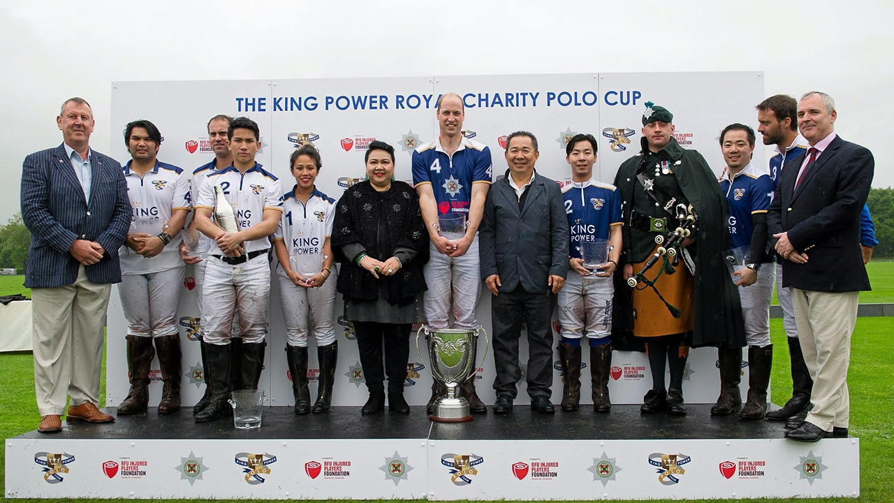 เจ้าชายวิลเลี่ยม ทรงฉายพระรูปเป็นที่ระลึกหลังรับถ้วยรางวัล พร้อมนักกีฬาโปโลทั้ง 2 ทีม และผู้จัดการแข่งขัน.จัดการแข่งขันโปโลการกุศลประจำทุกปี “วิชัย ศรีวัฒนประภา” บอสใหญ่คิง เพาเวอร์ ได้รับพระกรุณาจากเจ้าชายวิลเลี่ยม แห่งเคมบริดจ์ ลงแข่งขันโปโลใน ทีม คิง เพาเวอร์ ฟอกซ์เซส ร่วมกับอภิเชษฐ์-อัยยวัฒน์ ศรีวัฒนประภา และ ฟากุนโดเพียร์เลส นักโปโลมืออาชีพ ในงาน “The King Power Royal Charity Polo Cup 2017” ซึ่งจัดขึ้นที่สนามคิง เพาเวอร์ บิลลิ่งแบร์ ปาร์ค ประเทศอังกฤษ เมื่อเร็วๆนี้ ซึ่งการแข่งขันครั้งนี้ ได้แบ่งออกเป็น2 ทีมคือ ทีมคิง เพาเวอร์ ฟอกซ์เซส กับทีม คิงเพาเวอร์ ที่นำโดย เจ้าชายอับดุล มาทีน, เจ้าชายบาฮาร์ เจฟรี่ โบลเกีย, เจ้าหญิงอาเซมะห์ โบลเกีย แห่งรางวงศ์บรูไน และ กอนซาลิโต้ เพียร์เลส การแข่งขันเป็นไปอย่างสนุกสนาน ท่ามกลางเสียงเชียร์ของแขกที่มาร่วมงานอย่างคับคั่ง รวมทั้งเจ้าหญิงมาเรียม แห่งบรูไน ที่มาร่วมเชียร์โอรส “เจ้าชายอับดุล มาทีน” ด้วย โดยผลการแข่งขัน ทีมคิงเพาเวอร์ ฟอกซ์เซส สามารถเฉือนคู่แข่งไปด้วยคะแนน 5-3 สำหรับรายได้ของการแข่งขันในปีนี้ได้สมทบทุนเข้ามูลนิธิการกุศล Royal Irish Guards และมูลนิธิ Rugby injury แห่งสหราชอาณาจักร.