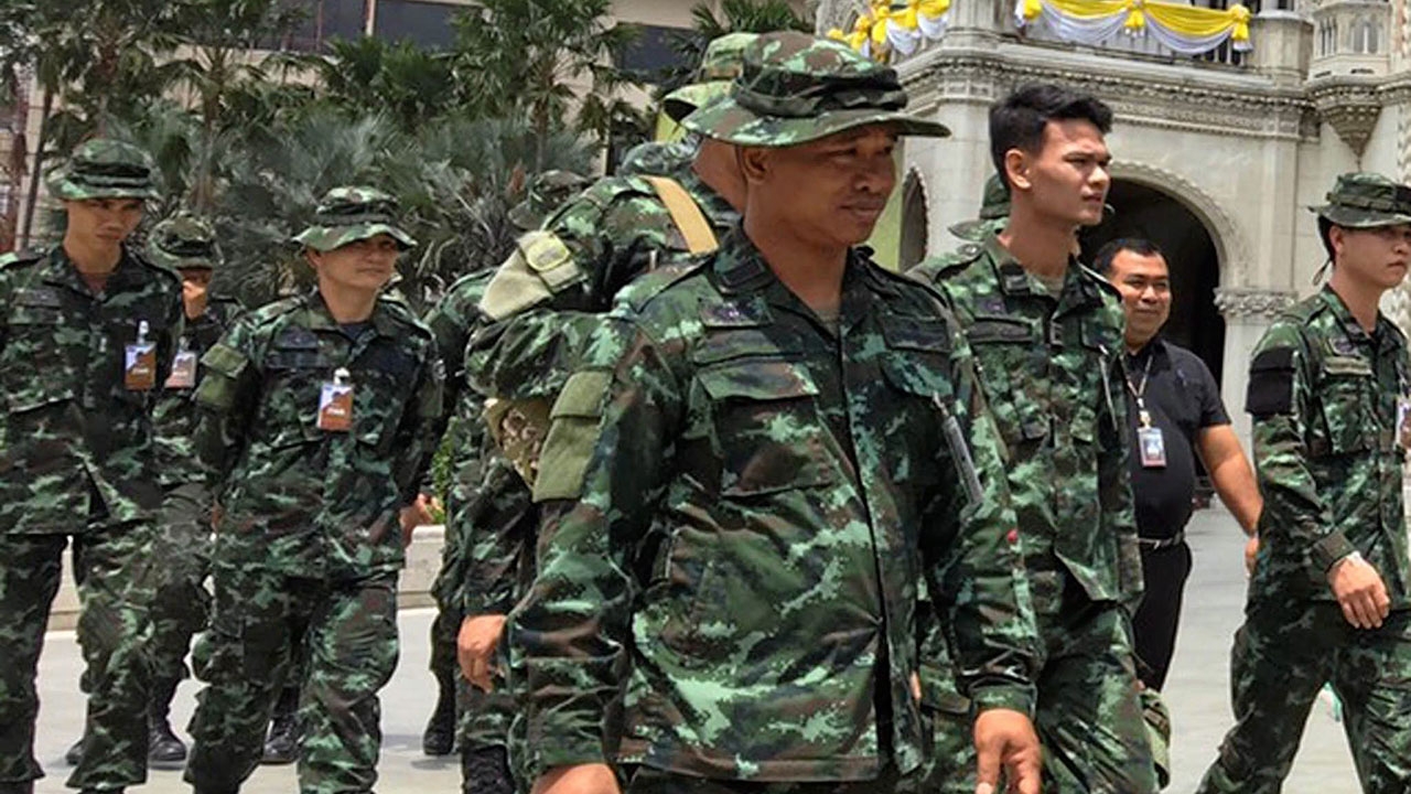 ทหารจากกองพันจู่โจมกรมรบพิเศษที่ 3 หน่วยบัญชาการสงครามพิเศษ หรือ “เบเรต์แดง” จาก จ.ลพบุรี เดินตรวจตราดูแลความเรียบร้อยภายในทำเนียบรัฐบาล หลังมีผู้ก่อเหตุเกิดเหตุระเบิดภายในโรงพยาบาลพระมงกุฎเกล้า จนมีคนบาดเจ็บจำนวนมาก.