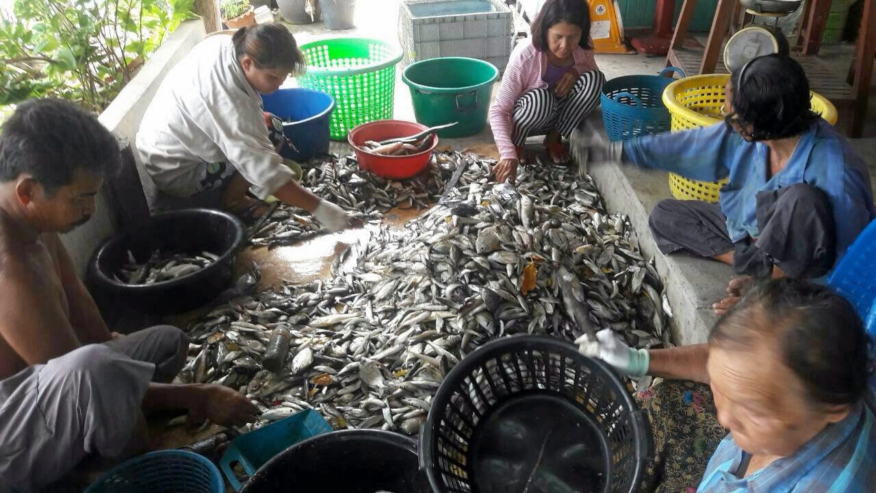 “เดิมทางบ้านทำอาชีพเปิดรับซื้อสัตว์น้ำและสัตว์ทะเลจากชาวประมงนำมาใส่บ่อดิน เพื่อขุนเลี้ยงให้โต ก่อนนำไปขาย แต่ระยะหลังสัตว์น้ำมีลดน้อย ลง เลยเปลี่ยนมาใช้วิธีเลือกซื้อหาแต่พ่อแม่พันธุ์มาเพาะเลี้ยงขยายพันธุ์เอง บังเอิญปี 2548 ประมงจังหวัดสมุทรปราการมาชวนเข้าร่วมโครงการเพาะ เลี้ยงสัตว์น้ำระบบอินทรีย์ เพราะได้ราคาดีกว่าเลี้ยงแบบทั่วไปเกือบเท่าตัว” นายสุรกิจ ละเอียดดี เจ้าของฟาร์มเลี้ยงสัตว์ทะเลในบ่อดิน ต.แหลมฟ้าผ่า อ.พระสมุทร–เจดีย์ จ.สมุทรปราการ เล่าว่า ตอนนั้นงงมาก เพราะไม่รู้ว่าการเลี้ยงสัตว์น้ำอินทรีย์คืออะไร...เป็นวิธีเพาะเลี้ยงสัตว์น้ำแบบไม่ใช้ยารักษาสัตว์น้ำเมื่อเกิดโรค ไม่ใช้สารเคมีในทุกขั้นตอนของการผลิตสัตว์น้ำ แต่พื้นที่เลี้ยงได้ จะต้องอยู่บริเวณปากแม่น้ำและห่างไกลโรงงานอุตสาหกรรม จึงตัดสินใจเข้าร่วมโครงการ มีเจ้าหน้าที่กรมประมงเป็นพี่เลี้ยง คอยจัดทำมาตรฐานออกใบรับรองการเพาะเลี้ยงสัตว์น้ำอินทรีย์ให้กับผู้เข้าร่วมโครงการ...เริ่มด้วยการเลี้ยงสัตว์น้ำหลายชนิด ทั้งกุ้งกุลาดำ ปลากะพงขาว ปูทะเล ปลาตูหนา หอยแครง ปลาหมอ ปลานิลจิตรลดา ฯลฯ เลี้ยงรวมในบ่อเดียวกัน ส่วนขั้นตอนวิธีการเลี้ยง สุรกิจ บอกว่า จะนำพ่อแม่พันธุ์มาผสมกันในบ่อปูนแบบธรรมชาติ เมื่อได้ลูกออกมาแล้ว นำไปปล่อยลงบ่อเลี้ยง โดยแบ่งพื้นที่เป็นโซน 4 บ่อ บ่อแรก 2 ไร่ เลี้ยงสาหร่ายทะเลไว้ใช้เป็นอาหาร...บ่อที่สอง 3 ไร่ ใช้เก็บพ่อแม่พันธุ์สัตว์น้ำ...บ่อที่สาม 20 ไร่ เลี้ยงสัตว์น้ำกร่อย สำหรับบ่อสุดท้าย 30 ไร่ เลี้ยงสัตว์ทะเลมีทางเข้า–ออกของน้ำทะเล ให้น้ำทะเลหมุนเวียน โดยจะเปิดประตูให้น้ำเข้า ช่วง “น้ำเกิด” (13 ค่ำ–แรม 3) และปิดประตูช่วง “น้ำตาย” (8 ค่ำถึง 12 ค่ำ)สำหรับอาหารที่ใช้เลี้ยงจะใช้ปลาเป็ด ปลาข้างเหลือง บดแล้วนำไปหย่อนใส่ลงบ่อ แต่ละบ่อจะให้ไม่เท่ากัน ขึ้นอยู่กับจำนวนปลาที่เลี้ยง ภายใน 6 ชั่วโมง สังเกตหากมีอาหารเหลือให้ตักออก...หากเกิดน้ำเน่าจะใช้จุลินทรีย์สูตรน้ำเพื่อบำบัดไม่ต้องห่วงว่า ให้อาหารวันละครั้งแล้วตักออกอาหารจะไม่พอ เพราะการเลี้ยงแบบนี้น้ำในบ่อมีสาหร่ายทะเลให้กินได้ตลอดเวลา ส่วนการจับสัตว์น้ำจะทำทุกวันขึ้น 15 ค่ำ โดยใช้อวนและตาข่ายขนาด 8 มม. เพราะปลาจะลอยขึ้นมาเล่นแสงจันทร์ทำให้จับง่ายๆ และไม่เปลืองค่าไฟ เลือกจับเฉพาะสัตว์น้ำขนาดใหญ่เท่านั้น ส่วนปูจะใช้ลอบจับเอาเฉพาะขนาด 3 ตัวโล หากตัวเล็กกว่านี้จะปล่อยลงบ่อ พื้นที่ 55 ไร่ เลี้ยงด้วยวิธีนี้ ช่วยสร้างรายได้ให้ สุรกิจ เดือนละ 7 หลัก ยังได้เป็นวิท