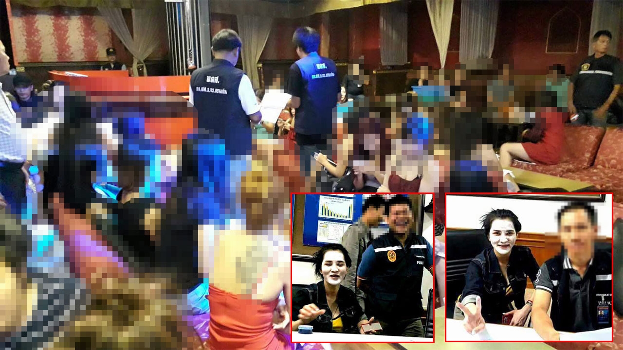 ทหาร ตำรวจและฝ่ายปกครอง ตรวจสถานบันเทิงฮาเล็ม และคลีโอพัตราในตัวเมืองขอนแก่น ที่ น.ส.ปรียานุช หรือเปรี้ยว โนนวังชัย กับพวกแก๊ง “สวยหั่นศพ” เคยทำงาน พร้อมตรวจปัสสาวะพนักงานกับนักเที่ยวหาสารเสพติด ขณะที่ พ.ต.ท.ฤทธิไกร กะระกล รอง ผกก. และ ร.ต.อ.ธวัชศิลป์ บุญตันหล้า รอง สว.ตม.จ.เชียงราย ถ่ายรูปกับผู้ต้องหา (รูปเล็ก) ถูกย้ายไป ศปก.ตม.5 พร้อมตั้งกรรมการสอบสวน.