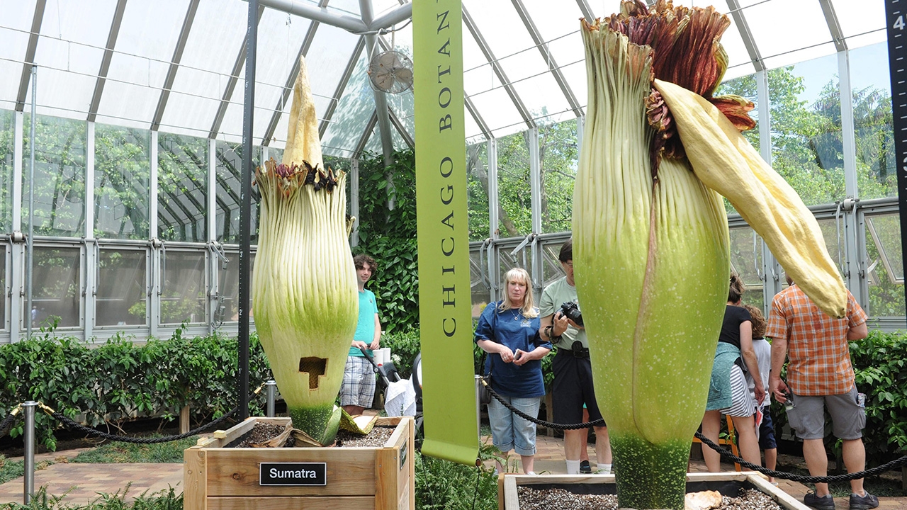 เป็นปรากฏการณ์ที่หาชมได้ยาก เมื่อ “ดอกซากศพ” หรือ “ดอกบุกยักษ์” (Titan arum) ที่ต้องใช้เวลา 10 ปีถึงจะออกดอก 1 ครั้งและบานเพียง 1 วัน ทั้ง 2 ต้นสูงกว่า 2 เมตร พร้อมใจกันบานในเวลาใกล้ๆกัน พืชชนิดนี้พบที่เกาะสุมาตรา ประเทศอินโดนีเซีย เพียงแห่งเดียวเท่านั้น แต่ 2 ต้นนี้นำมาปลูกไว้ในสวนพฤกษศาสตร์ชิคาโก เมืองชิคาโก รัฐอิลลินอยส์ ประเทศสหรัฐอเมริกา ดึงดูดให้นักท่องเที่ยวเข้าไปชมนับพันคน แม้ว่าจะต้องทนกลิ่นเหม็นที่ดอกไม้ดังกล่าวปล่อยออกมาเพื่อล่อเหยื่อจำพวกแมลงเข้าไป.