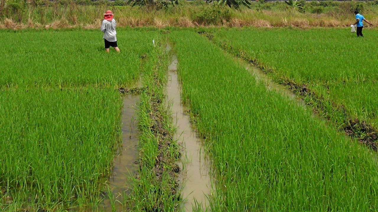 คนไทยปลูกข้าวจะใส่ปุ๋ย 3 ครั้งต่อฤดู ครั้งแรกใส่ปุ๋ยรองพื้น จากนั้น 45 วัน ตามด้วยปุ๋ยก่อนข้าวตั้งท้อง และใส่ปุ๋ยเร่งผลผลิต... รวมๆแล้วใส่ปุ๋ยประมาณไร่ละ 105 กก.ปุ๋ยที่ใส่ลงไป ข้าวไม่ได้ใช้ประโยชน์ทั้งหมด เพราะจะถูกชะล้างไหลไปกับน้ำ กลายเป็นต้นทุนที่ไม่เกิดประโยชน์ดร.รจนา ตั้งกุลบริบูรณ์ นักวิจัยอาวุโส ศูนย์เชี่ยวชาญนวัตกรรมเกษตรสร้างสรรค์ สถาบันวิจัยวิทยาศาสตร์และเทคโนโลยีแห่งประเทศไทย (วว.) บอกว่า การใช้ปุ๋ยปริมาณมาก ยังทำให้โครงสร้างดินเสื่อม หน้าดินแน่น ต้นข้าวเป็นโรคกาบใบเน่า เมล็ดข้าวลีบ ด่างดำ หากแปลงไหนใส่ปุ๋ยไนโตรเจนมาก ข้าวใบเขียวหนาแน่น เป็นแหล่งอาศัยเพลี้ยกระโดดสีน้ำตาล เพื่อแก้ปัญหาดังกล่าว ทีมวิจัย วว.จึงคิดค้นพัฒนา ปุ๋ยอินทรีย์เคมีละลายช้าสำหรับการผลิตข้าวแบบใช้ปุ๋ยครั้งเดียว “ปุ๋ยใส่นาข้าวครั้งเดียว จะใช้ปุ๋ยอินทรีย์มาช่วยปรับปรุงความเสื่อมโทรมของดิน ทำให้อินทรียวัตถุในดินเจริญเติบโต และมีปุ๋ยเคมีสูตรธาตุอาหารที่เหมาะกับข้าว ตลอดระยะเวลา 110-120 วัน ปุ๋ยจะปลดปล่อยธาตุอาหารที่พืชต้องการออกมาช้าๆ ช่วยให้พืชได้รับสารอาหารอย่างสม่ำเสมอ เท่ากับอายุเพาะปลูกข้าว”การผสมสูตรปุ๋ยให้เหมาะสมกับสภาพดินแต่ละแห่ง ดร.รจนา บอกว่า เริ่มจากนำโปรแกรมที่กรมพัฒนาคิดค้นมาสำรวจดินคำนวณตามแผนที่ดิน แต่ละแห่งมีโครงสร้างลักษณะไหน หากไม่สามารถเทียบได้ ทีมวิจัยจะมีชุดทดสอบดิน เพื่อให้รู้ค่าวิเคราะห์ดินอย่างง่าย ให้ชาวบ้านตรวจสอบได้เอง และวิธีสุดท้ายคือการเก็บตัวอย่างดินส่งให้กรมพัฒนาที่ดินวิเคราะห์จากนั้นชาวนาจะเริ่มผสมสูตรปุ๋ยละลายช้าใช้เอง โดยใช้ปุ๋ยมูลสัตว์ 950-1,050 กก. ผสมกับปุ๋ยสูตร 46-0-0 จำนวน 2-5 กก. ปุ๋ยสูตร 0-3-0 (สามารถเปลี่ยนให้เหมาะกับโครงสร้างดิน) จำนวน 20-40 กก. แร่ซีโอไลต์ และกรดซิลิคอน ทำหน้าที่ช่วยให้การปล่อยปลดธาตุอาหารหลักของพืชอย่างช้าๆ คลุกเคล้าส่วนผสมทั้งหมดให้เข้ากัน เติมน้ำให้มีความชื้น ตักปุ๋ยขึ้นมากำ ต้องไม่แตก และน้ำไม่ซึมตามรอยนิ้ว จากนั้นใช้ผ้ายางคลุมไม่ให้ความชื้นระเหย จากนั้นเปิดกลับกองปุ๋ยทุกๆ 7 วัน หลังหมักปุ๋ยครบ 30 วัน สามารถนำไปใส่นาข้าวที่ลงมือปลูกไปแล้ว 15-20 วันในอัตรา 50 กก.ต่อไร่ เพียงครั้งเดียว เมื่อทีมวิจัยนำไปทดสอบในแปลงนา จ.ปทุมธานี และสุพรรณบุรี เพื่อเปรียบเทียบกับแปลงนาที่ยังใส่ปุ๋ยด้วยวิธีเดิม เมื่อปี 2557-2559 พบว่า แปลงที่ใส่ปุ๋ยครั้งเดียว ต้นข้าวมีความต้านทานโรคดีกว่า โดยเฉพาะอาการโรคขอบใบไหม้แทบไม่มี โรคแมลงไม่เกิดขึ้นง่าย ติดรวงสม่ำเสมอ เมล