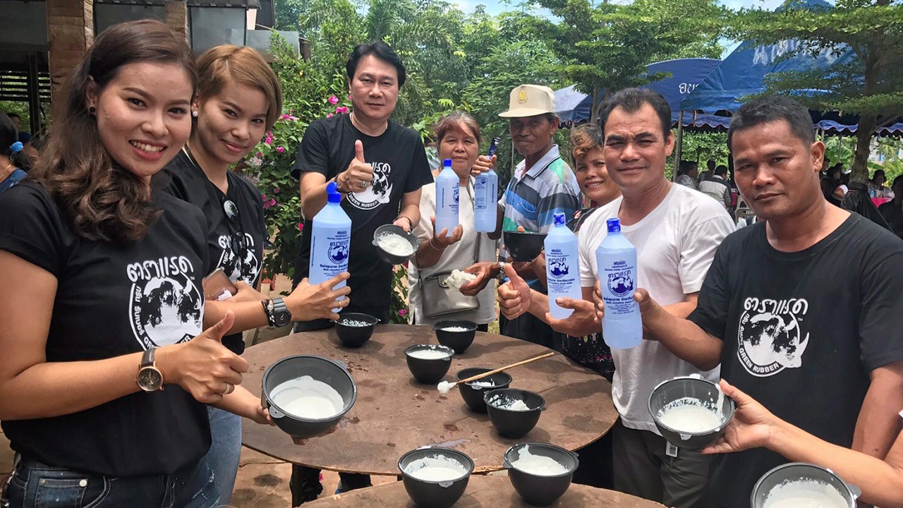 ชาวสวนยางกำลังฮึ่มๆกดดันให้ภาครัฐตอบชัดๆจะช่วยอย่างไรในช่วงราคากำลังดิ่งลงเหว...!หลังจากเปิดฤดูกรีดยางยังไม่ทันข้ามเดือน ราคายางก็ตกต่ำพรวดพราด ต้นทุนที่ลงไปไม่คุ้มกับราคาที่ได้จะหันหน้าไปพึ่งใครก็ยากเต็มที ไม่ว่ารัฐหรือองค์กรการยางมัวพะวงแต่หลักการเงื้อง่าราคาแพง ไม่ลงมือทำอะไรให้เป็นรูปธรรม ถ้าแบบนี้ไม่มีอะไรเปลี่ยน เมื่อไหร่ชาวสวนยางจะเงยหน้าอ้าปากได้แต่วันนี้มีแนวทางการแก้ปัญหาจากผู้รู้ที่ทำไปแล้วรูปธรรมความชัดเจนน่าจะเกิดขึ้นได้จากการเปิดเผยของ นายธนพล พลพิสิฐกุล ประธานชมรมพ่อค้ายางพาราบึงกาฬ ปัจจุบันจัดเป็นกลุ่มรับซื้อยางที่ให้ราคายางตามเปอร์เซ็นต์ยางแบบตรงไปตรงมา เพื่อส่งป้อนให้บริษัทไทยอิสเทิร์นเป็นส่วนใหญ่ แต่ไม่ได้เกี่ยวข้องกับ 5 เสือที่พี่น้องชาวสวนยางได้ยินชื่อแล้วยังต้องขยาดนายธนพล บอกถึงวิธีการแก้ปัญหาราคายางร่วงติดดินไว้ 2 แนวทาง แนวทางแรกชาวสวนต้องหันมาผลิตยางที่มีคุณภาพโดยใช้กรดหยอดยางก้อนถ้วยที่ดี หรือกรดฟอร์มิกผสมเสร็จพร้อมใช้ ซึ่งปัจจุบันมีให้เลือกหลายยี่ห้ออย่างเช่นที่แปะยี่ห้อตราแรดเอาไว้เพราะกรดตัวนี้จะช่วยทำให้เปอร์เซ็นต์ DRC ของยางมีคุณภาพสูง ถ้าเป็นยางสดจะได้กว่า 58% แต่ถ้ายางค้างคืนไว้ยิ่งดี จะได้ถึง 65-70% ทำให้ขายได้ราคามากกว่าเมื่อเทียบกับยางที่ทำจากกำมะถันหรือซัลฟิลริกนอกจากนี้การใช้กรดฟอร์มิกผสมเสร็จยังช่วยลดเรื่องกลิ่นเหม็นและน้ำเสียที่จะซึมลงสู่แหล่งน้ำสาธารณะ ทำให้ปลากระชังตายเกลื่อนจนโรงงานถูกร้องเรียนใกล้ถูกสั่งปิดกันหลายโรงงานอีกแนวทางต้องมองถึงการแก้ปัญหาที่ผ่านมา โดยนำเงินไปแจกชาวสวนยาง ไร่ละ 500-1,000 บาท เพราะทำแล้วสูญเปล่า สู้นำไปสร้างโรงงานแปรรูปยาง หรือให้กลุ่มสหกรณ์ที่ขึ้นทะเบียนแล้วไปรับซื้อยางจะดีกว่านี่คือ 2 แนวทางจากแนวคิดที่อยากเห็นพี่น้องชาวสวนยางรอดพ้นจากวิกฤติราคาดิ่งเหวในช่วงนี้...!ทีมข่าวภูมิภาค