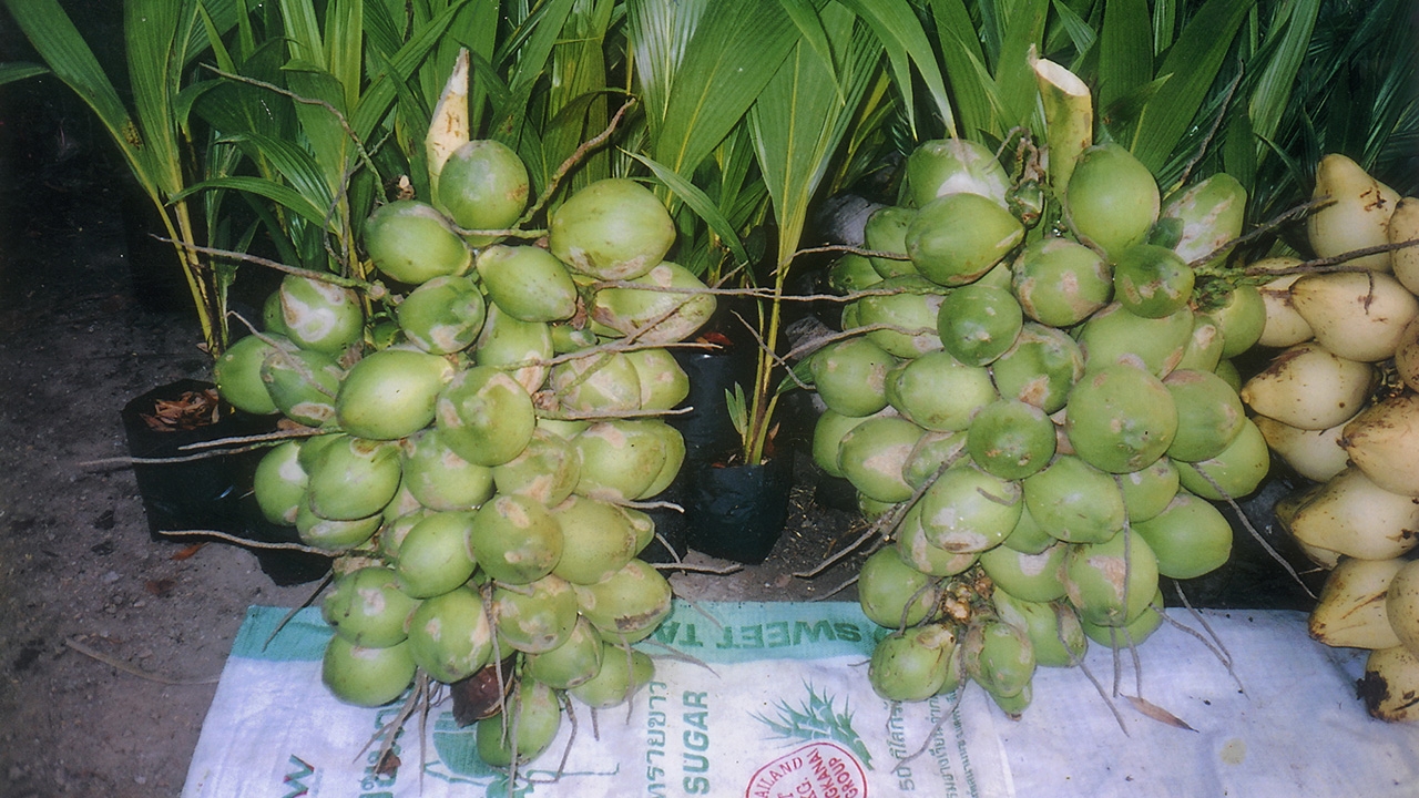 ผู้อ่านไทยรัฐ จำนวนมากอยากทราบว่าทำไม “มะพร้าวพวงร้อย-พวงทอง” ที่เคยแนะนำในคอลัมน์ หาซื้อต้นพันธุ์ได้ยากมาก ซึ่งเรื่องนี้ทราบว่า “มะพร้าวพวงร้อย-พวงทอง” ขยายพันธุ์สู่ตลาดไม่ทัน เนื่องจากเมื่อต้นติดผลเป็นทะลาย เจ้าของสวนที่ปลูกมะพร้าวทั้ง 2 ชนิดจะเก็บเอาผลสดไปขายได้ราคาดีกว่า จึงทำให้ไม่มีผลเอาไปขยายพันธุ์ดังกล่าว ที่สำคัญทราบว่าในปัจจุบันถ้ามีต้นพันธุ์จะถูกส่งขายให้ชาวต่างชาติหมดเกลี้ยง เลยทำให้ “มะพร้าวพวงร้อย-พวงทอง” หาซื้อได้ยากตามที่ระบุข้างต้นมะพร้าวพวงร้อย-พวงทอง มีชื่อวิทยาศาสตร์และมีลักษณะทางพฤกษศาสตร์เหมือนกับมะพร้าวน้ำหอมทั่วไปเกือบทุกอย่าง คือ ต้นสูงเต็มที่ไม่เกิน 3-4 เมตร ลำต้นตั้งตรง ไม่แตกกิ่งก้านสาขา ดอก ออกเป็นช่อระหว่างซอกก้านใบ ดอกเป็นแบบแยกเพศอยู่บนต้นเดียวกัน แต่ละช่อประกอบด้วยดอกย่อยจำนวนมาก “ผล” รูปกลมรีคล้ายผลของมะพร้าวน้ำหอมทั่วไป ผลโตเต็มที่เกือบเท่าผลของมะพร้าวน้ำหอมทั่วไปหรืออาจเล็กกว่าเล็กน้อย ที่เป็นจุดเด่นของ “มะพร้าวพวงร้อย-พวงทอง” ได้แก่ เวลาติดผลใน 1 ทะลายจะมีผลย่อยไม่น้อยกว่า 50–70 ผลขึ้นไป และจะติดผลดกเต็มทะลายอย่างสม่ำเสมอ ผู้ปลูกสามารถเก็บผลกินหรือเก็บผลขายได้ง่ายเนื่องจากต้นสูงไม่มากนั่นเองที่เป็นพิเศษของ “มะพร้าวพวงร้อย-พวงทอง” แม้ผลจะขนาดเล็ก แต่น้ำภายในผลจะมีมากและมีรสชาติหวานกว่าน้ำมะพร้าวทุกๆพันธุ์ น้ำมีกลิ่นหอมเฉพาะตัว เนื้อในผลมีความหนาเรียกว่าซ่อนรูปผลเล็กแต่น้ำและเนื้อเยอะ ปัจจุบันนิยมนำเอา “มะพร้าวพวงร้อย-พวงทอง” ไปทำ ห่อหมก ทำสังขยา ใส่ลงไปในผลที่ตัดบริเวณส่วนหัวเอาน้ำออกแล้วนึ่งให้สุกนำออกวางขายได้รับความนิยมจากผู้ซื้อไปรับประทานอย่างแพร่หลายมีต้นขาย ที่ตลาดนัดไม้ดอกไม้ประดับ สวนจตุจักร ทุกวันพุธ-พฤหัสฯ ต้องเดินสอบถามจากผู้ขายหรือสั่งให้จัดหาให้ ราคาสอบถามกันเองครับ.“นายเกษตร”