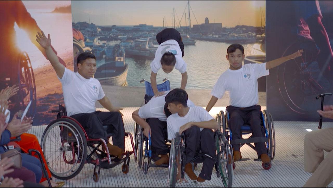 ฉากนี้ทั้งใหญ่และใช้คนเยอะ ที่สำคัญได้รับความร่วมมือจากโรงเรียนศรีสังวาลย์ ซึ่งเป็นโรงเรียนสำหรับผู้พิการโดยตรง นำน้องๆ ที่พิการทางขาต้องใช้รถวีลแชร์มาเข้าฉากเพื่อโชว์ความสามารถจริงๆ ของพวกเค้า ขณะซ้อมฝั่งนักแสดงความวุ่นวายเกิดขึ้นมากมายทั้งการสาดอารมณ์ใส่กันของนักแสดงตามบท ซึ่งก็จะหนักไปที่น้ำชากับโม ทั้งคู่ใช้สมาธิเค้นอารมณ์จนพีกสุด ส่วนคิวป้ายที่จะต้องล้ม แล้วโมกับเพื่อนต้องเข้ามาจับและรวบน้ำชาก็ต้องซักซ้อมกันหลายรอบ เป็นการถ่ายทำที่วุ่นวาย ซึ่งก็เป็นธรรมดาของฉากแบบนี้ แต่เมื่อถึงคิวน้องๆ วีลแชร์ที่ต้องมาเข้าฉากทุกคนนิ่งเงียบเพื่อดูการแสดงของน้องทั้ง 5 คนแบบอึ้งมาก ขนาดซ้อมคนทั้งห้องยังจ้องมองความสามารถพิเศษกันด้วยความประทับใจ และเหมือนจะเป็นอันรู้กันนักแสดงหลักพยายามเล่นไม่ให้พลาด เพื่อน้องๆ จะได้เล่นรอบเดียว ก็เป็นไปตามคาดหมาย ทั้งกำลังใจและความตั้งใจเพื่อจะทำให้ฉากนี้ออกมาประทับใจ และโฟกัสไปที่นักแสดงเด็กทั้ง 5 คน ทำให้ผู้ใหญ่เกือบ 50 ชีวิต รวมถึงทีมงานถ่ายทำอีกนับ 10 ร่วมแรงร่วมใจเพื่อเป้าหมายเดียวกัน ฉากที่น่าจะเป็นความยากลำบาก และรุนแรงทางอารมณ์ก็กลายเป็นฉากประทับใจทั้งทีมงานและนักแสดงทุกคนในทันที