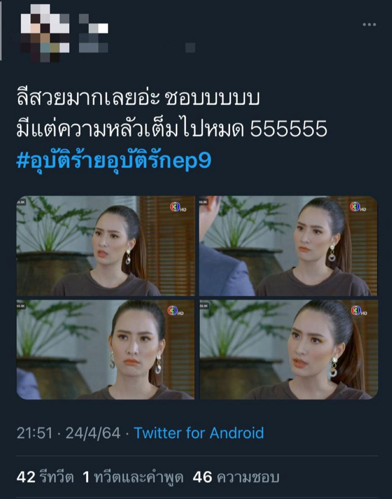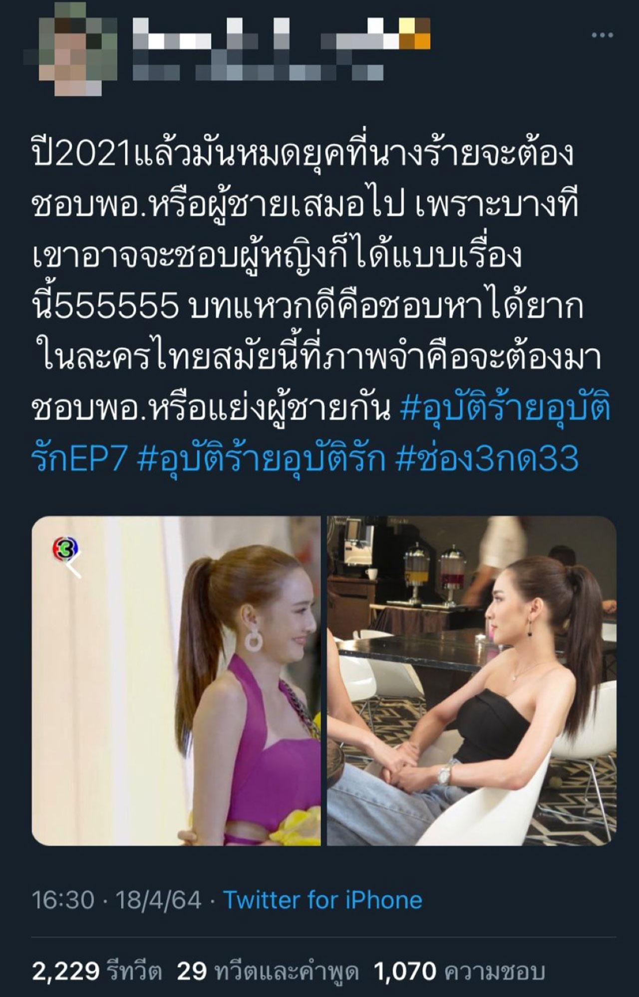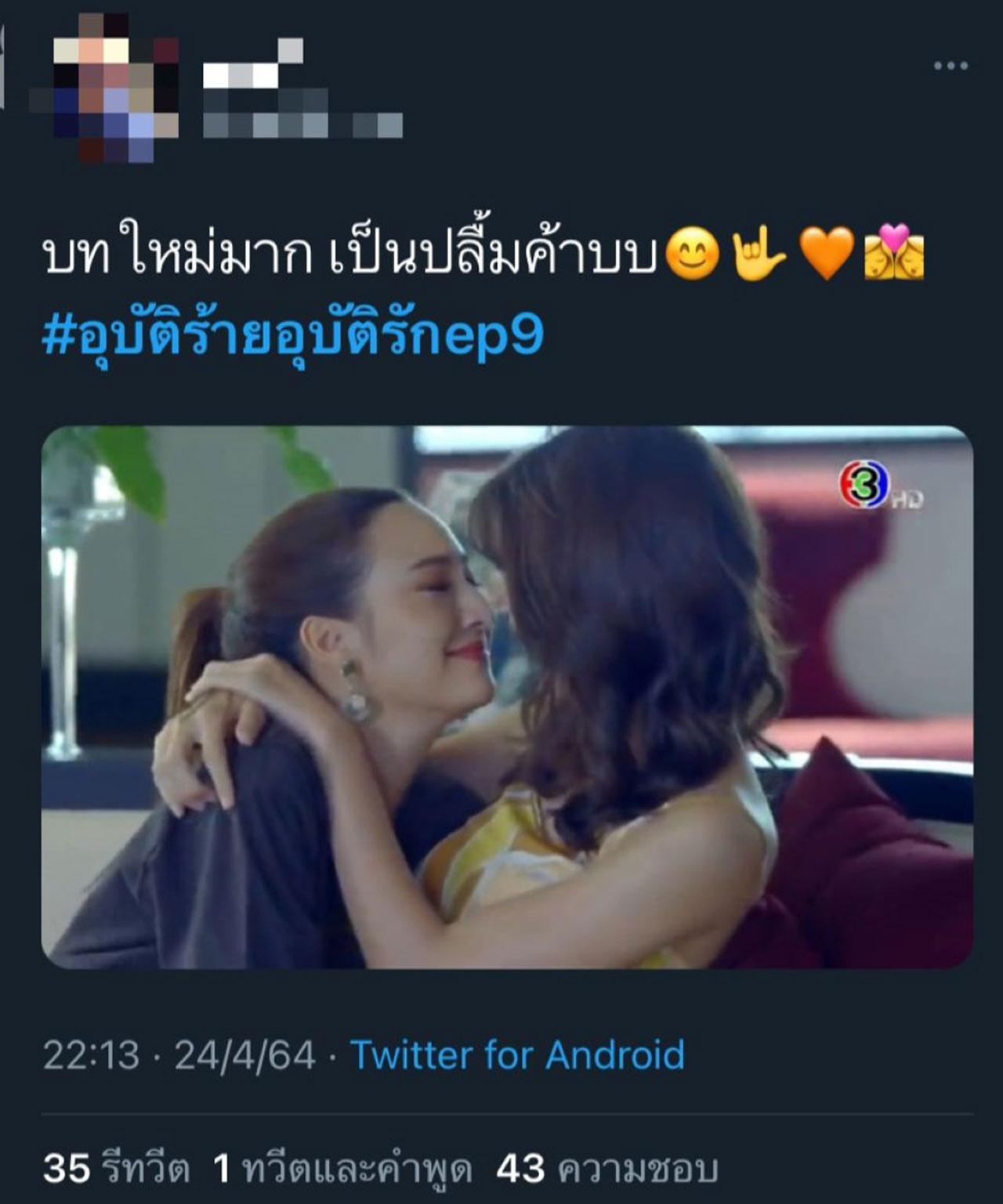 เรียกได้ว่าใครกำลังหลงคู่ “ลี-อลิส” และชื่นชอบฝีมือการแสดงเป็นสาวเลสเบี้ยนของ “แคร์ ฉัตรฑริกา” สามารถติดตามกันได้ในละคร “อุบัติร้ายอุบัติรัก” ทุกวันศุกร์ เวลา 20.30 น. และวันเสาร์-อาทิตย์ เวลา 20.20 น. โดยในวันอาทิตย์ที่ 9 พฤษภาคมนี้เสนอเป็นตอนจบ ทางช่อง 3 กด 33