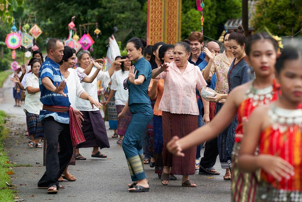 ขบวนแห่ที่ชาวบ้านมากันพร้อมหน้า โบว์ เมลดา ไม่ทำให้ผิดหวัง ทั้งรำ ทั้งเต้น มีทุกสเตปให้ได้ชมกัน ดวลฝีมือกับ สมจิต จงจอหอ ซึ่งรับบทเป็นพ่อ ซึ่งการถ่ายทำฉากนี้ กินเวลาหนึ่งวันเต็ม เพราะมีรายละเอียดเยอะ พอถึงฉากที่ณเดชน์ ขึ้นไปฟังเทศน์ บนศาลา จึงมีการถ่ายทำในวันต่อมา ใช้เวลาสองวัน สำหรับงานบุญ ซึ่งรับรองว่า ท่านผู้ชมให้ดูฉากนี้กันแล้ว อยากจะไปร่วมงานบุญที่บ้านหนองกะแยงกันอย่างแน่นอน