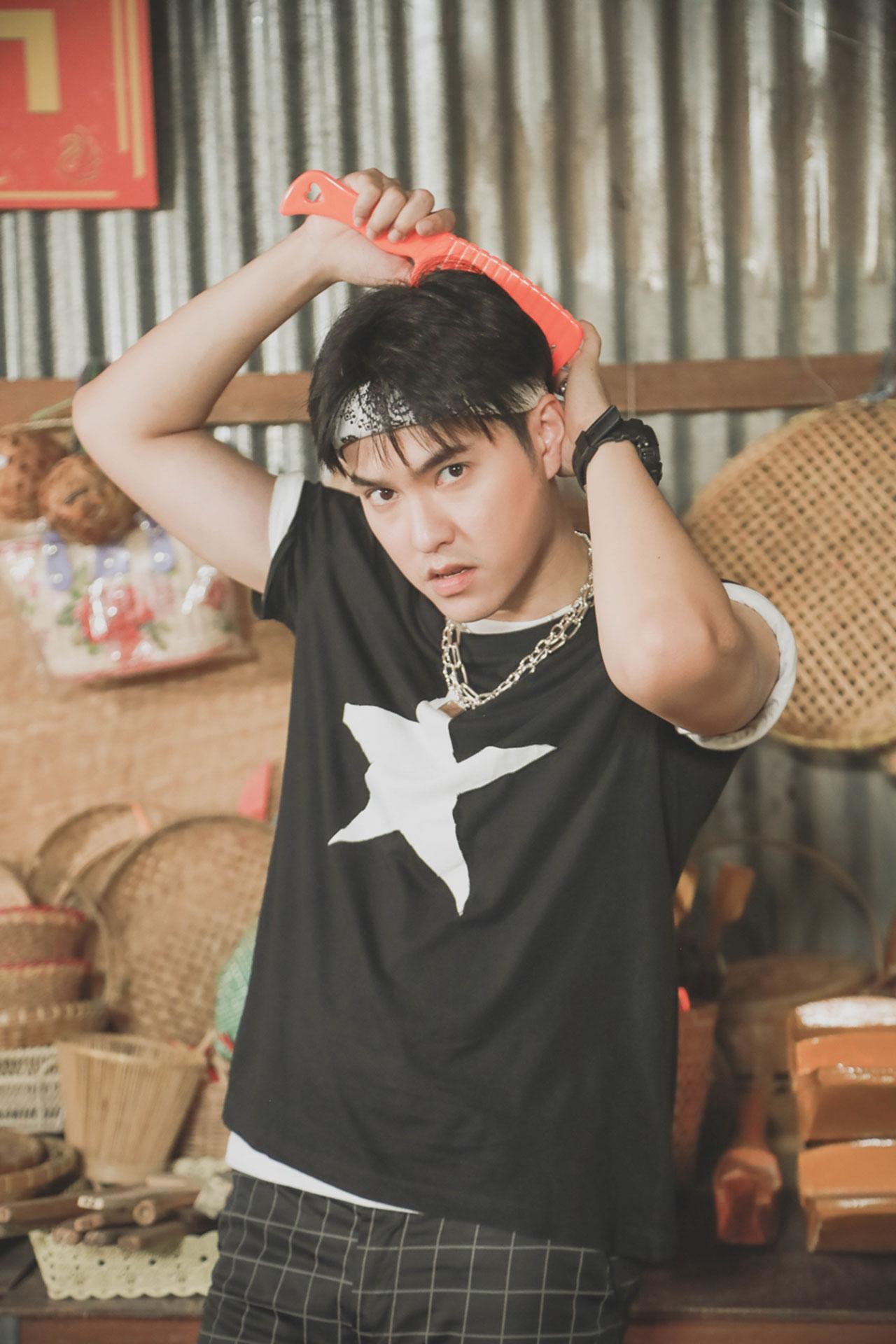 "ตอนแรกพี่ๆ ทีมงานบอกว่าคาแรกเตอร์ของผมจะเป็นคนที่ชอบแต่งตัวแบบซุป'ตาร์ยุค 90 เป็นคนที่มั่นใจว่าตัวเองหล่อมาก มีความฝันอยากใช้ชีวิตในเมืองใหญ่ อยากไปเห็นแสงสีในเมืองกรุง ชอบคบหาคนที่มาจากเมืองกรุง ตอนแรกก็ยังนึกไม่ออกว่าจะแต่งออกมาแบบไหน แต่พอเริ่มถ่ายทำผ่านไปหลายๆ ฉาก พี่ๆ ทีมงานจัดเต็มมาก คอลเลกชั่นเสื้อผ้าของผมแน่นสุด แค่เห็นชุดก็ฮาแล้ว สีสันจัดจ้านมาก แต่ละตอนในซิตคอม ผมได้แต่งตัวหลายแนวมาก มีแนวพี่เต๋า สมชาย, พี่ลิฟท์ (สุพจน์ จันทร์เจริญ) พี่ออย (ธนา สุทธิกมล) พี่ทาทา ยัง อะไรแบบนี้ คือศิลปินยุค 90 มารวมอยู่ในตัวผมคนเดียว (หัวเราะ)"