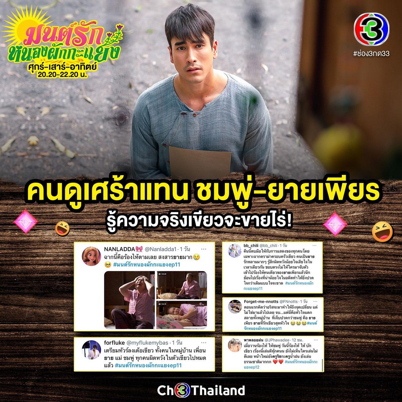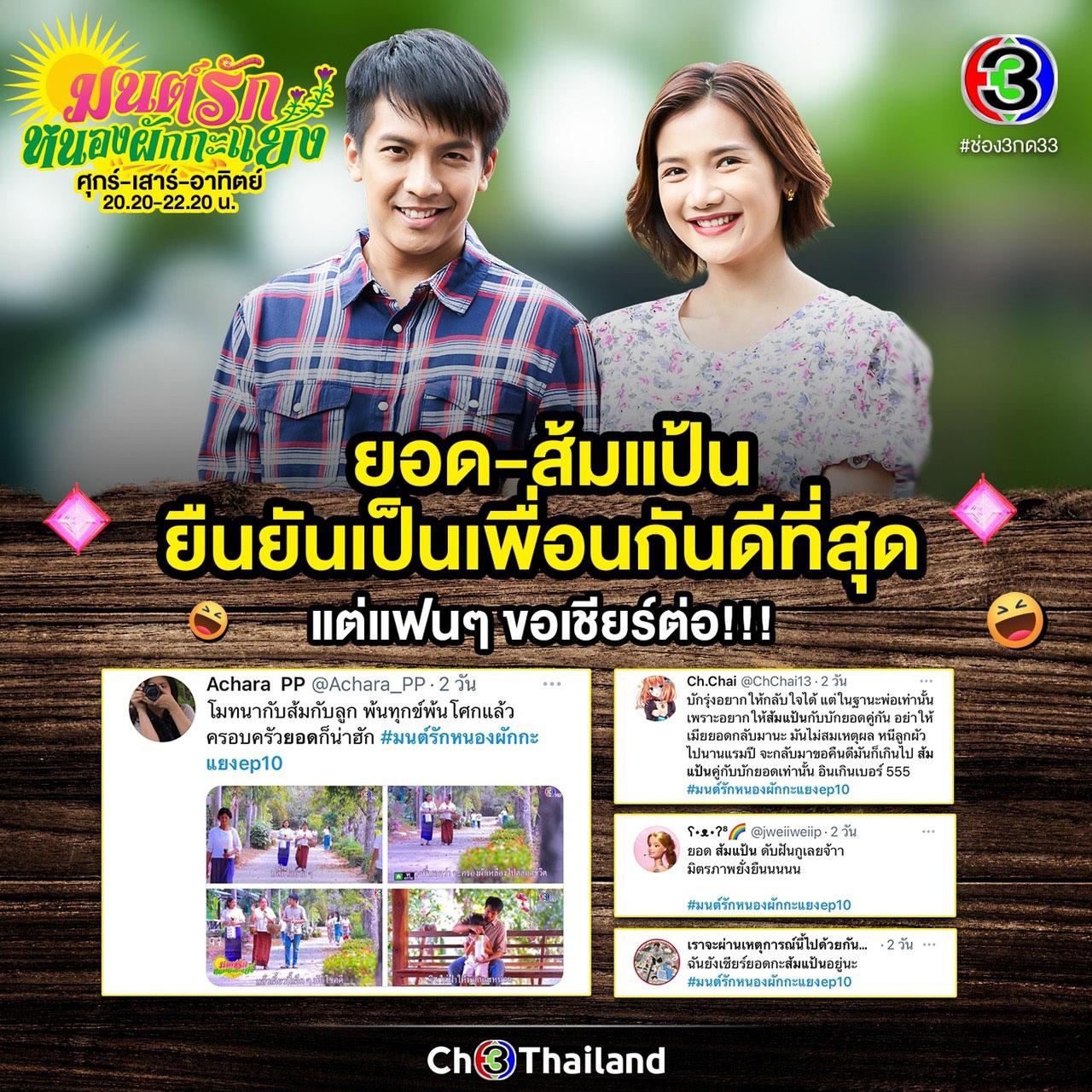 บทสรุปความรักของ “บักเขียว-ชมพู่” จะจบลงยังไง ติดตามได้ใน “มนต์รักหนองผักกะแยง” ตอนจบ วันศุกร์ที่ 11 มิถุนายนนี้ เวลา 20.30 น. ทางช่อง 3 กด 33 สำหรับใครพลาดความสนุกไปสามารถติดตามชมย้อนหลังได้ทาง CH3Plus
