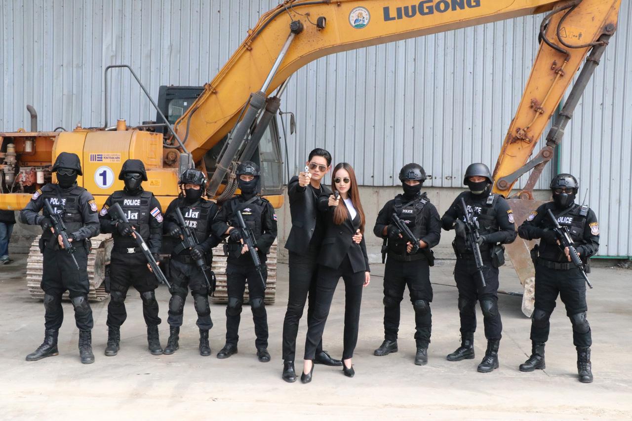 เบื้องหลังฉากนี้ ผู้กำกับ ทองก้อน ศรีทับทิม ตั้งใจให้เป็นฉากจบแบบเท่ๆ พระนางเปิดตัวด้วยชุดสีดำให้อารมณ์ควงปืนมาเฟียสุดๆ ซึ่งทั้งเข้มและการ์ตูนต้องซ้อมการหมุนตัวกันอยู่สักพักเพื่อภาพที่สวยงาม เพราะต้องมีจังหวะที่เข้มต้องโอบการ์ตูนให้หมุนตัวยิงแบบเท่ๆ ก่อนจะพากันวิ่งเพื่อหลบระเบิด