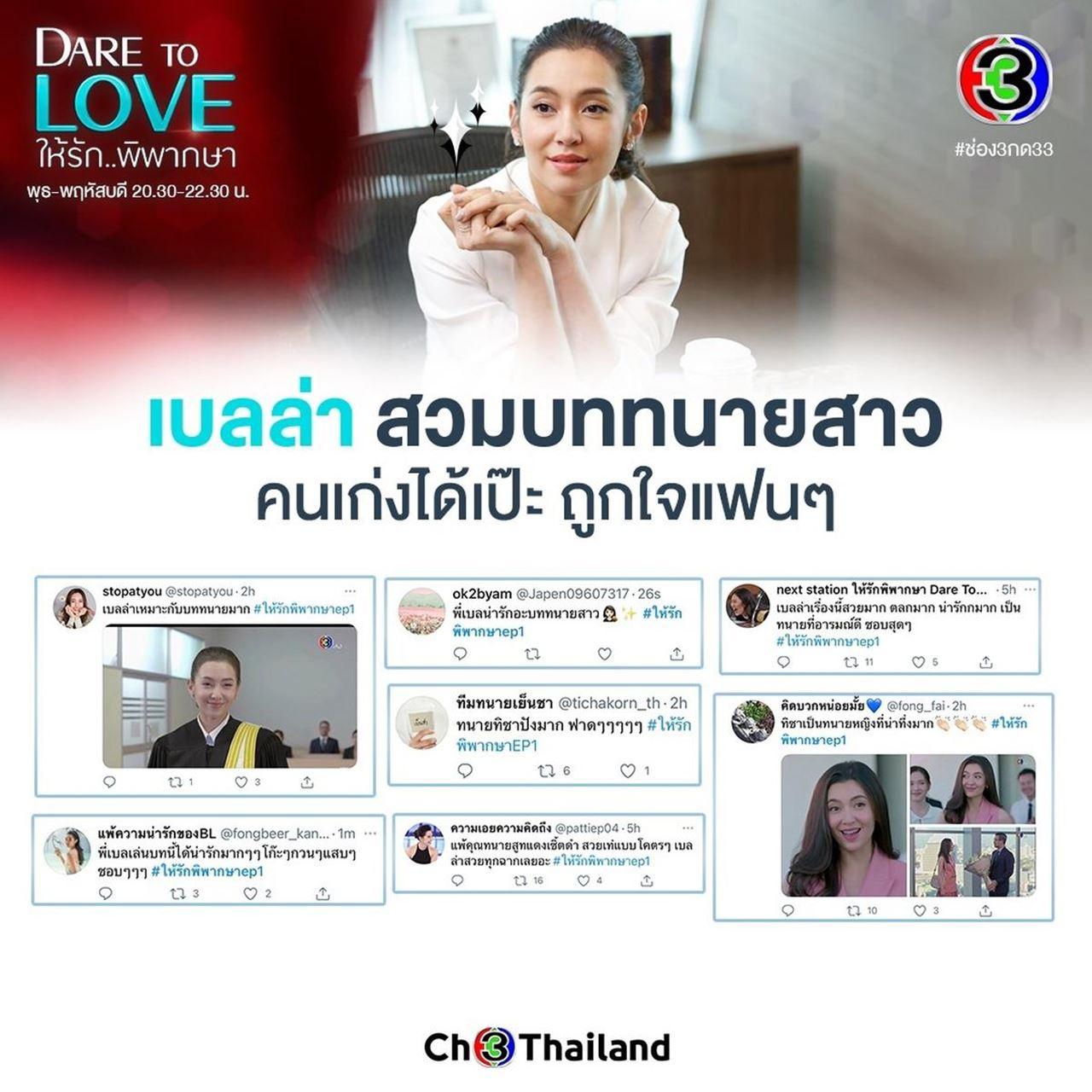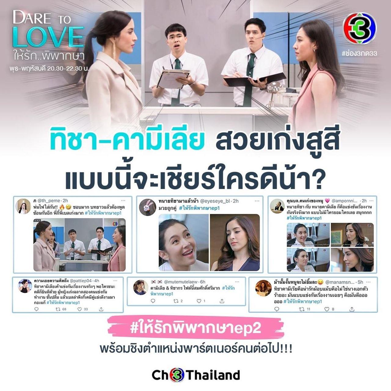 งานนี้ใครไม่ดูไม่ได้แล้วนะ กระแสตอนแรกปั๊วะปังขนาดนี้ ติดตามละคร “Dare to love ให้รักพิพากษา ” ได้ทุกวันพุธ-พฤหัสบดี เวลา 20.30 น. ทางช่อง 3 กด 33