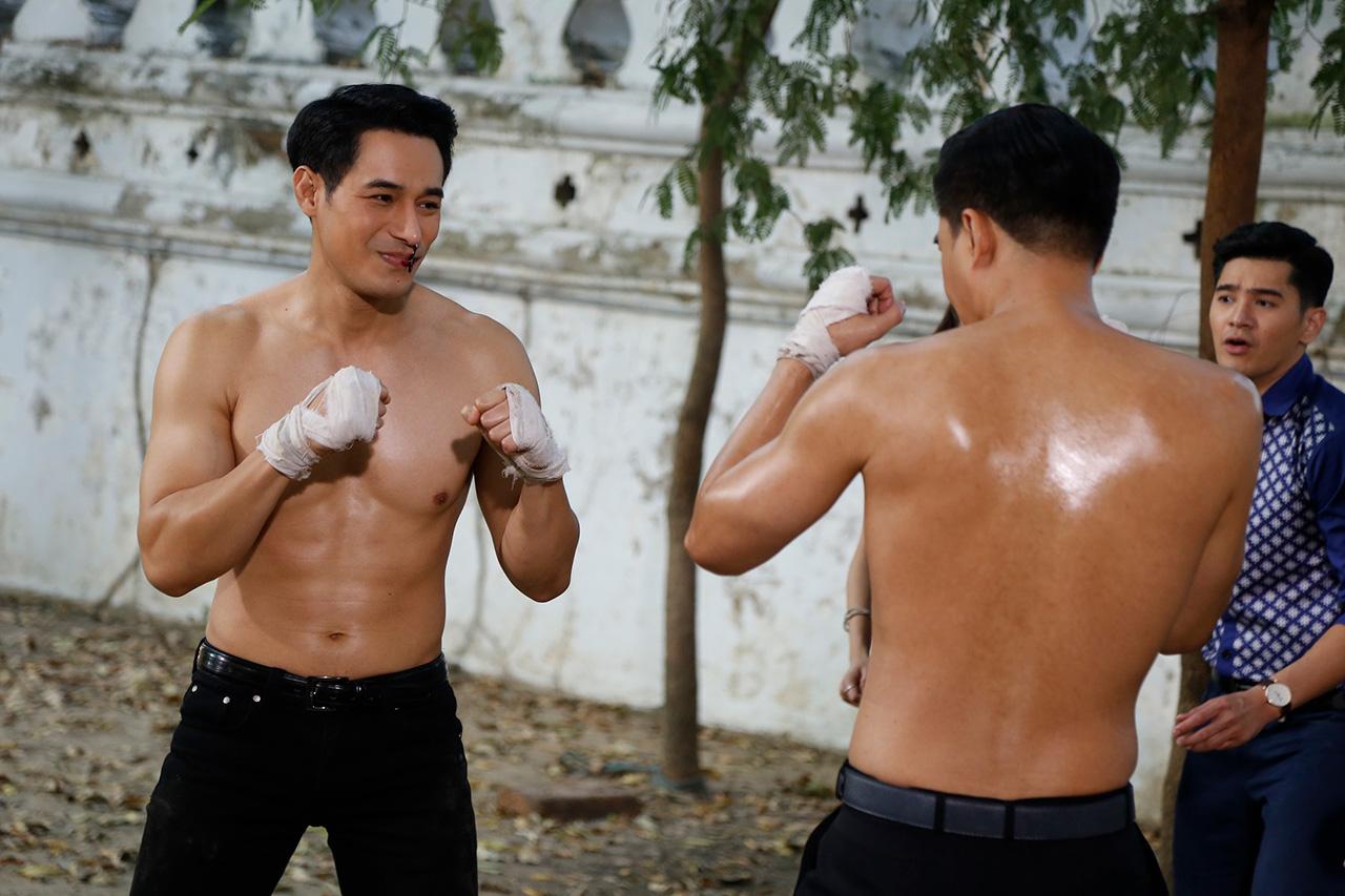 เป็นฉากที่ เรือง (เคลลี่) รู้จากสมรว่า นคร (โอม) มีความสามารถด้านมวย จึงคิดอยากจะงัดข้อกับนครแบบขำๆ ด้านนครก็ยอมเพราะถืออากาสนี้ซื้อใจเรืองเพื่อที่จะให้เรืองไว้ใจ ส่วน วันเพ็ญ (แพร) ที่กำลังจะเดินทางกลับบ้าน ดันไปเห็น ปลื้ม (แคท) นั่งอยู่กับ มุกดา (มิว) ก็คิดแผนสนุก ไปยั่วโมโหปลื้มให้ตะบะแตก มุกดาบอกปลื้มให้พยายามใจเย็นๆ แต่ปลื้มก็ทนแรงยุวันเพ็ญไม่ไหว ขอตบสั่งสอน ด้านนครที่ยอมเป็นต่อให้เรืองก็โดนต่อยน่วม แต่เรืองก็ต้องหยุดเพราะได้ยินเสียงดังอีกฟากของวัดคือ เมียของตน