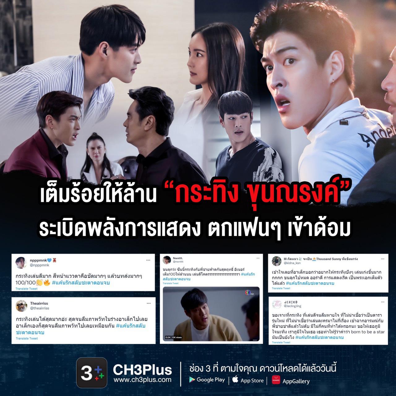 เหนื่อยจะอวยแต่อยากอวยให้โลกจำกับ 3 ตอนสุดท้ายของละคร “แค้นรักสลับชะตา” ทางช่อง 3 หลังเปิดเรตติ้งในพื้นที่กรุงเทพฯ ที่ทะยานขึ้นเรื่อยๆ ใน EP.14 ที่ทำไปได้ถึง 5.44 และใน EP.15 ทำไปได้ถึง 7.27 และปิดจ๊อบไปได้สวยกับเรตติ้งวันสุดท้ายใน EP.16 ที่พุ่งทะยานพีคไปถึง 7.48 นอกจากนี้ ยังทำยอดผู้ชมออนไลน์ตอนจบทะลุ 622,875 คน และยอดดูย้อนหลังทุก EP. สูงกว่า 45 ล้านวิว ปังกว่านี้ไม่มีอีกแล้ว
