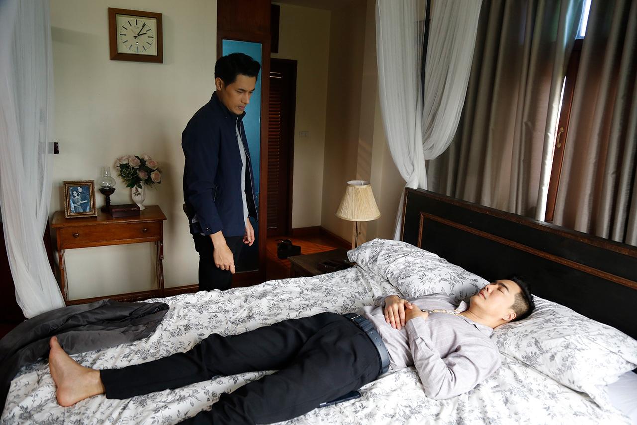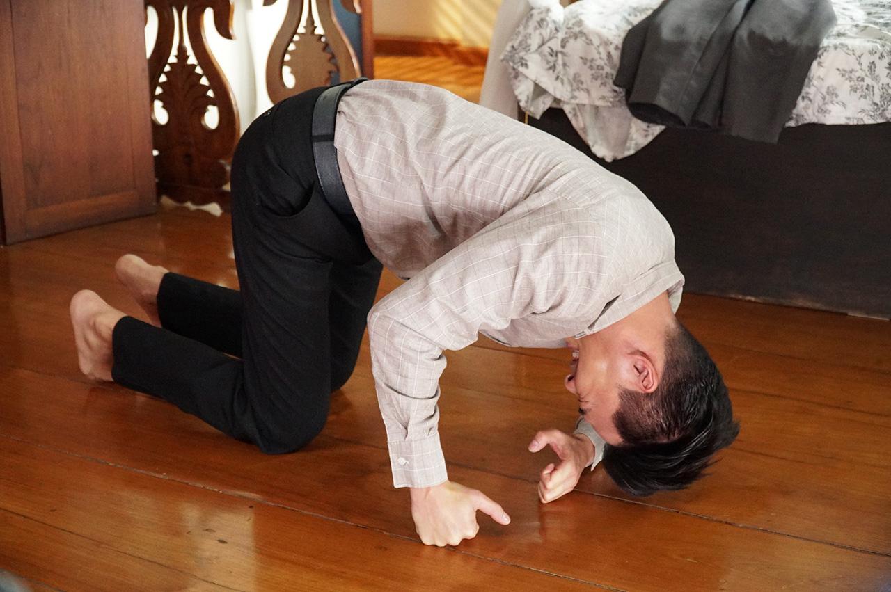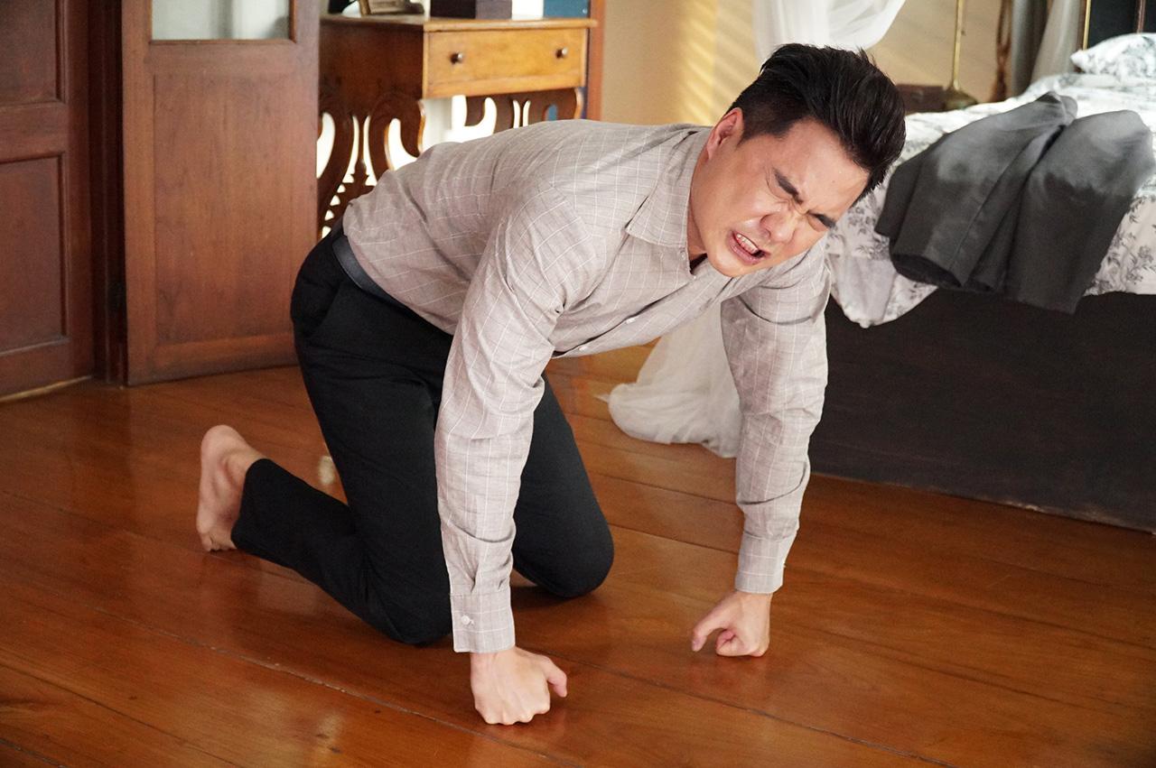 เป็นฉากที่ เรือง (เคลลี่ ธนะพัฒน์) เริ่มมีอาการประหลาด เลือดออกจมูก มีอยู่วันหนึ่ง เรืองรู้สึกไม่ค่อยดีจึงขอตัวขึ้นมานอนพักผ่อนที่ห้อง อยู่ๆ เรืองก็มีอาการปวดศีรษะอย่างรุนแรง ลงไปดิ้นคุมสติไม่อยู่ มือเท้าหด ชักเกร็ง ส่งเสียงร้องเหมือนวัว เรืองพยายามฝืนคลานไปหยิบพระมาคล้องคอ อยู่ๆ อาการก็เบาลง เรืองหลับในมือกำพระแน่น นคร (โอม-อัชชา) ที่ถือโอกาสมาเยี่ยม เห็นทางสะดวกจึงคิดจะฆ่าเรือง แต่อยู่ๆ ก็เกิดเปลี่ยนใจ