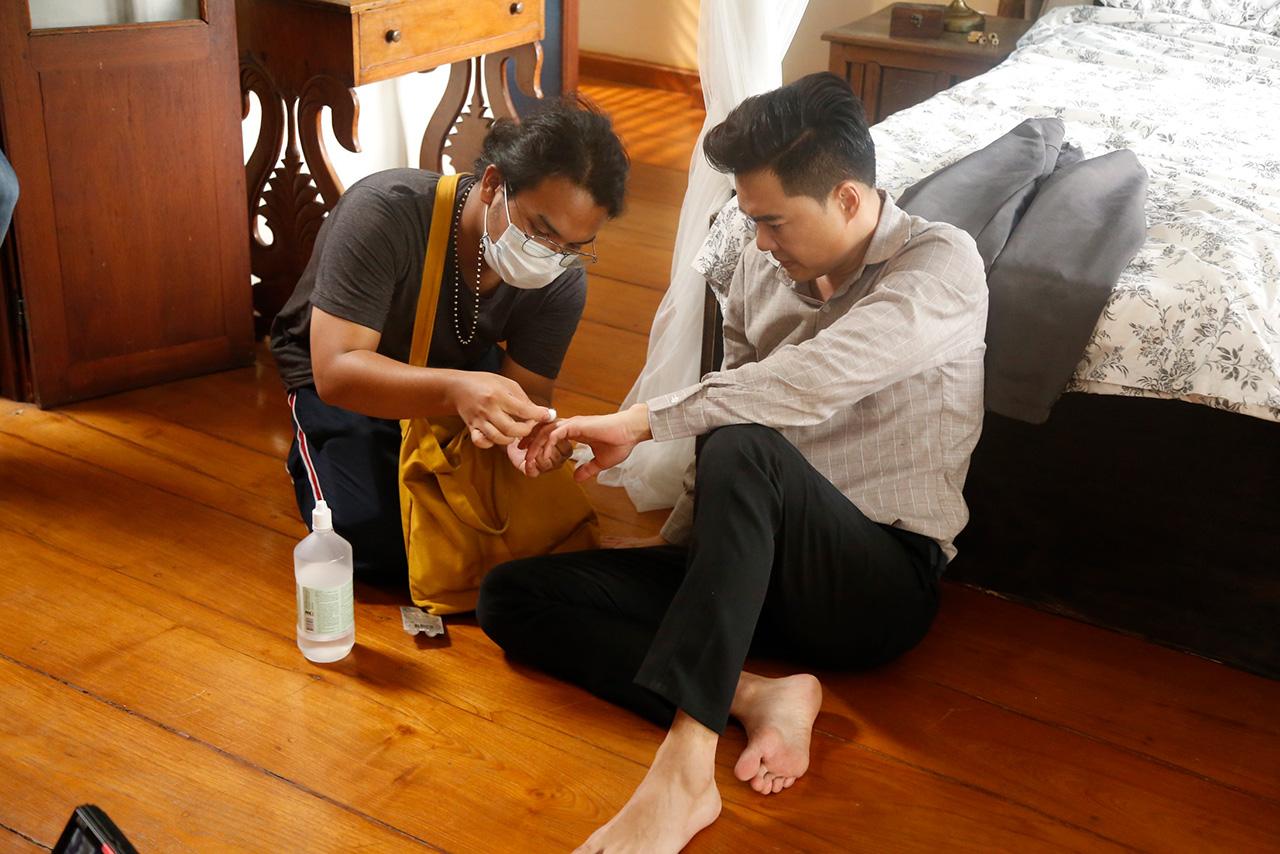 เบื้องหลังฉากนี้ ทีมงานยกกองไปถ่ายทำกันที่ บ้านเรือนไทย ย่านแจ้งวัฒนะ เรียกได้ว่าวันนี้เป็นซีนที่หนักหน่วงของเคลลี่ และถือว่าเป็นจุดเริ่มต้นของซีนที่หลายคนรอคอย นั่นก็คือ เรืองเริ่มจะได้รับผลกรรม งานนี้เคลลี่บอกว่าเป็นซีนที่ซุ่มซ้อมทำการบ้านมาอย่างหนัก ด้านหนุ่มโอมที่ซีนนี้ดูเหมือนจะเป็นคนชิลมากที่สุด เพราะแค่ถือปืนมายืนมองแค้นๆ ขอยืนให้กำลังใจพี่ชายอยู่ห่างๆ เพราะหนุ่มโอมบอกว่าแค่อ่านบทมาก็ขนลุกแล้ว เชื่อว่าถ้าได้ถ่ายทอดจากนักแสดงชั่วโมงบินสูงอย่างเคลลี่ ต้องออกมาขนลุกแน่นอน ถึงเวลา ผู้กำกับ ปกาสิต กิ่งศักดิ์ เรียกทั้งคู่มาซักซ้อมคิวต่อบทกัน