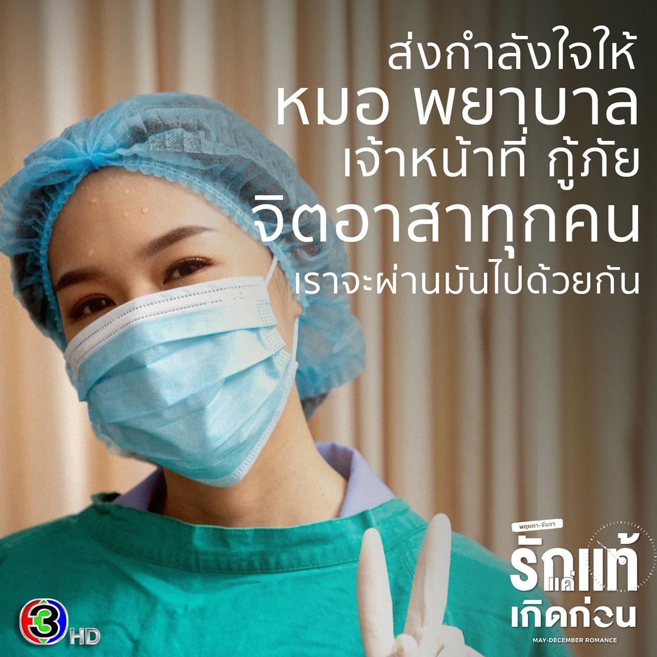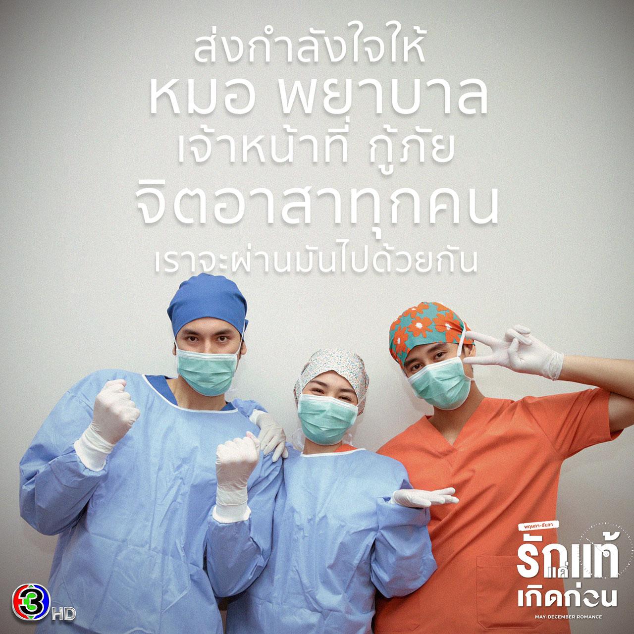 ทั้งนี้ นักแสดง และทีมงานละครเรื่องนี้ทุกคน จึงส่งผ่านกำลังใจผ่านโปสเตอร์ เพื่อขอร่วมเป็นส่วนหนึ่ง ส่งพลังให้กับเหล่านักรบชุดขาว ทีมด่านหน้าทุกคน ขอให้ปลอดภัย และขอบคุณทุกความเสียสละ ทุกความทุ่มเทที่ดูแลชีวิตคนป่วยอย่างเต็มกำลัง และหวังว่าเราคนไทยทุกคนจะก้าวข้ามสถานการณ์โควิด-19 ที่รุนแรงในครั้งนี้ไปได้โดยเร็ว