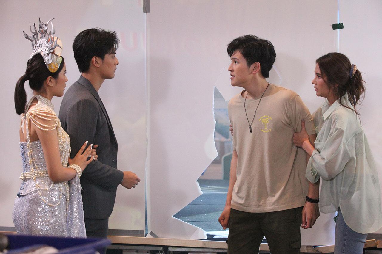 ฉากนี้เป็นตอนที่ขวัญนารี (คะน้า-ริญญารัตน์) เดินแฟชั่นชุดท้องทะเล ระหว่างที่ซ้อมเดินบนเวที ก็ดันมีเหตุการณ์ไม่คาดคิด เมื่อ มะพร้าว (เจเจ-ธนศักดิ์) ล้มทะลุแบ็กดร็อปไปทับร่างของขวัญนารี ทำให้ล้มหน้าคว่ำ ไอยคุปต์ (บลิว-วรพล) กับ ฟากฟ้า (เนย-ปภาดา) ต้องเข้ามาดึงมะพร้าว