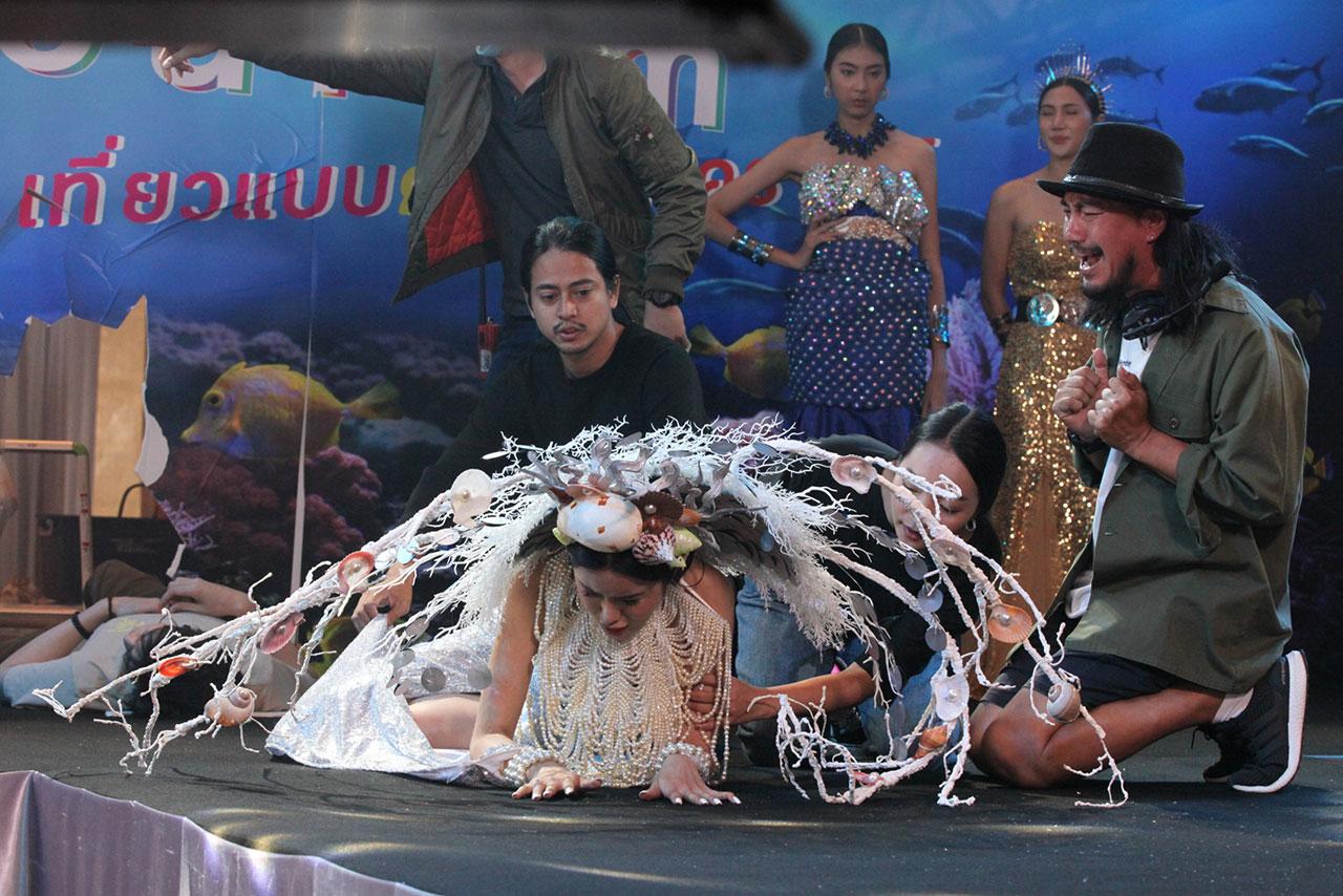 เบื้องหลังฉากนี้ทางผู้จัดและผู้กำกับอย่าง “คุณหลุยส์-สยาม สังวริบุตร” ได้ทุ่มทุนในการเนรมิตฉากงานเดินแฟชั่นนี้อย่างอลังการ ทั้งฉากและชุดของนางแบบที่จัดเต็ม โดยเฉพาะชุดไฮไลต์ของคะน้า ที่ออกแบบมาให้ดูโดดเด่นและอลังการ เรียกว่ารวมมิตรใต้ท้องทะเลมาไว้ในชุดนี้ พอคะน้าเห็นชุดถึงกับตะลึง เพราะปีกที่คะน้าต้องใส่มันใหญ่และหนักมาก แต่ด้วยสปิริตและความเต็มใจที่เกินร้อย คะน้ายอมสวมใส่ตั้งแต่ตอนซ้อมยันถ่ายทำจริงจนจบ เพื่อให้ชินกับน้ำหนักของชุดที่ใส่