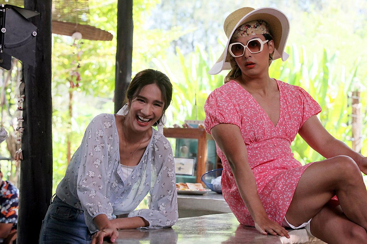 เบื้องหลังฉากนี้บอกเลยว่าทั้งนักแสดงและทีมงานหัวเราะกันหนักมาก พยายามกลั้นขำแต่ก็กลั้นเอาไว้ไม่อยู่จริงๆ ก็บลิวดันทุ่มทุนเนรมิตความสวยมาแบบจัดเต็มตั้งแต่หัวจดเท้าขนาดนี้ใครเห็นก็ต้องตะลึง อึ้งกันบ้าง ต้องขอยกความดีความชอบให้กับทีมเสื้อผ้า หน้าผม ที่ช่วยกันแปลงลุคของบลิวได้สวยดั่งใจ พี่หลุยส์-สยาม สังวริบุตร ผู้กำกับ