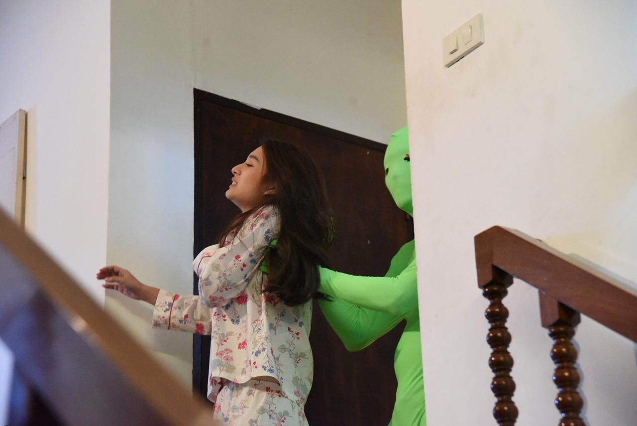 และฉากเด็ดที่จะพาไปชมเบื้องหลังในวันนี้ เป็นตอนที่ ผีวารี (มายด์ ฑาริกา อินสุวรรณ์) โกรธที่ ปาลิศา (มิว นิษฐา จิรยั่งยืน) มาเช่าอาศัยในบ้านเจ๊ฮิเดโกะ (แพท ณปภา ตันตระกูล) ได้อยู่ใกล้ชิดกับ ตรีกาล (เจมส์ มาร์) ก็เลยอาละวาด บีบคอปาลิศา ในห้องน้ำ พอปาลิศาวิ่งหนี ก็ตามมานั่งตัวบีบคอ หวังให้ตายอีก ดีที่ตรีกาล มาช่วยได้ทัน ในขณะที่ตัวปาลิศาเองก็สู้ยิบตา พวกเดอะแก๊ง เชฟโอ (อั๋น วิทยา วสุไกรไพศาล) ข้าวปั้น (ฟรอยด์ ณัฏฐพงษ์ ชาติพงษ์) และ มาวิน (ปราโมทช์ เทียนชัยเกิดศิลป์) ก็แปลกใจ เพราะไม่มีใครมองเห็นผี