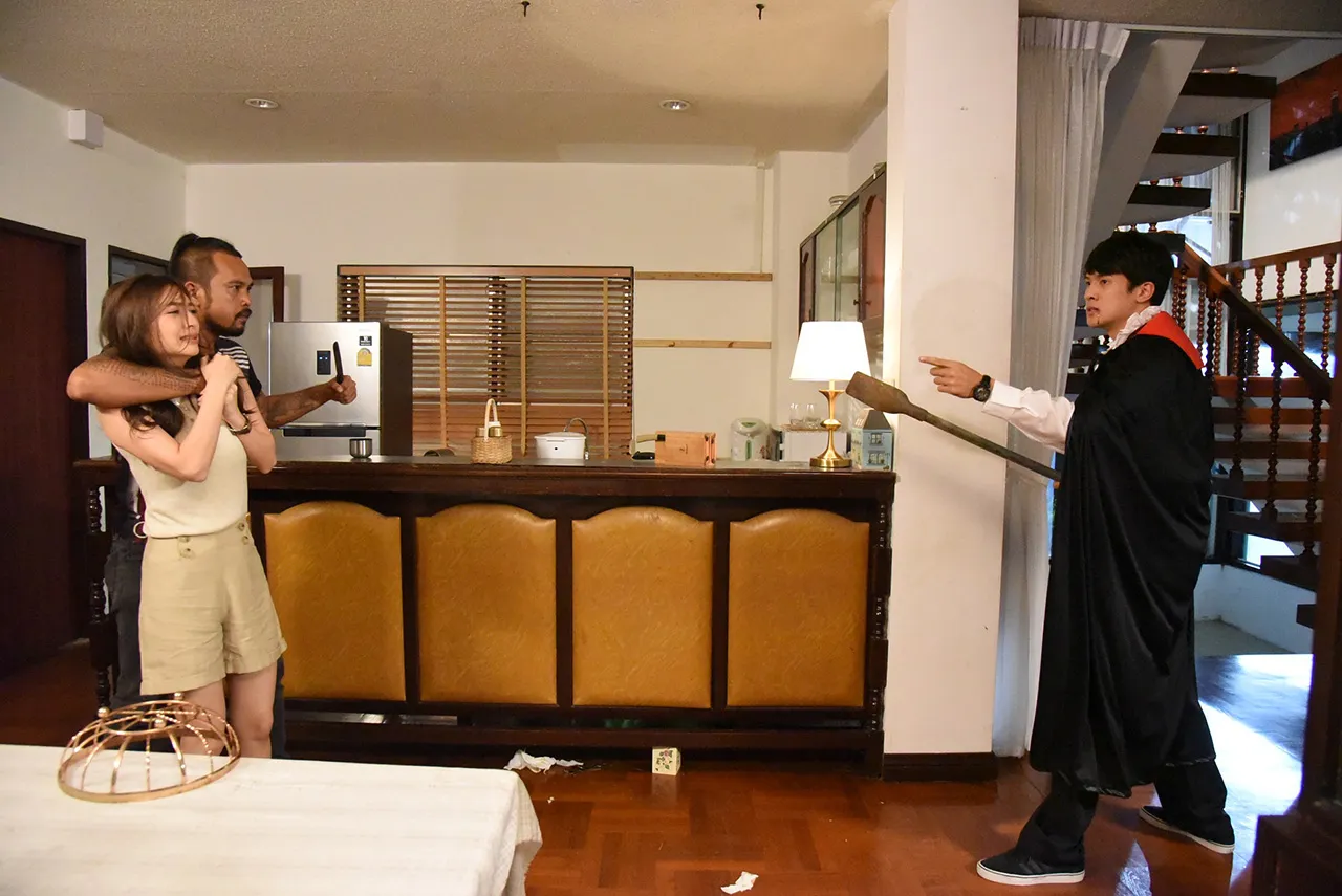 และเบื้องหลังฉากเด็ดที่หน้าบันเทิงจะเสนอให้ชมในวันนี้ เป็นตอนที่ร้านญี่ปุ่นของ เจ๊ฮิเดโกะ (แพท ณปภา ตันตระกูล) จัดโปรโมชันวันฮาโลวีน ทั้งตัวเจ๊ฮิเดโกะและพนักงานทุกคนแต่งตัวเป็นผีกัน แต่ก็เกิดเหตุการณ์วุ่นวาย มีคนปลอมตัวเป็นผีมาก่อเรื่อง ผีจริงก็มา ทำให้ ไอ้ตี๋ หรือ ตรีกาล (เจมส์ มาร์) เป็นห่วง ปาลิศา (มิว นิษฐา) หรือความจริงก็เปิดเผยมาแล้วว่าคือปุ้ม ก็เลยรีบกลับไปที่บ้าน ซึ่งก็เจอ ผีวารี (มายด์ ฑาริกา อินสุวรรณ์) ยังคงต้องการแก้แค้นคนที่ตรีกาลรัก กำลังทำร้ายปุ้ม สะกดจิตขโมยที่เข้าบ้านให้ใช้มีดแทงปุ้ม ดีที่ ผีแม่เชฟโอ (วาสนา สิทธิเวช) มาช่วยได้ทัน