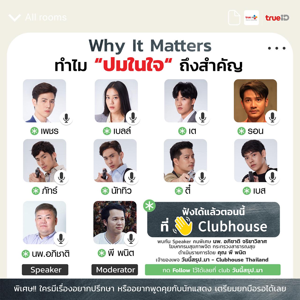 เมื่อคืนที่ผ่านมาทาง เพจ วันนี้สรุป..มา - Clubhouse Thailand ได้จัด Online Event หัวข้อ #WhyItMatters EP.42 มาร่วมกันค้นหาคำตอบว่า ทำไม "ปมในใจ" ถึงสำคัญ พร้อมกับเหล่านักแสดงจากเรื่อง Remember You และคุณหมออภิชาติ ถึงแม้หัวข้อสุดเข้มข้น แต่เนื้อหากลับอุ่นใจ เพิ่มพลังบวกไปทั้งแฟนคลับและผู้ฟัง