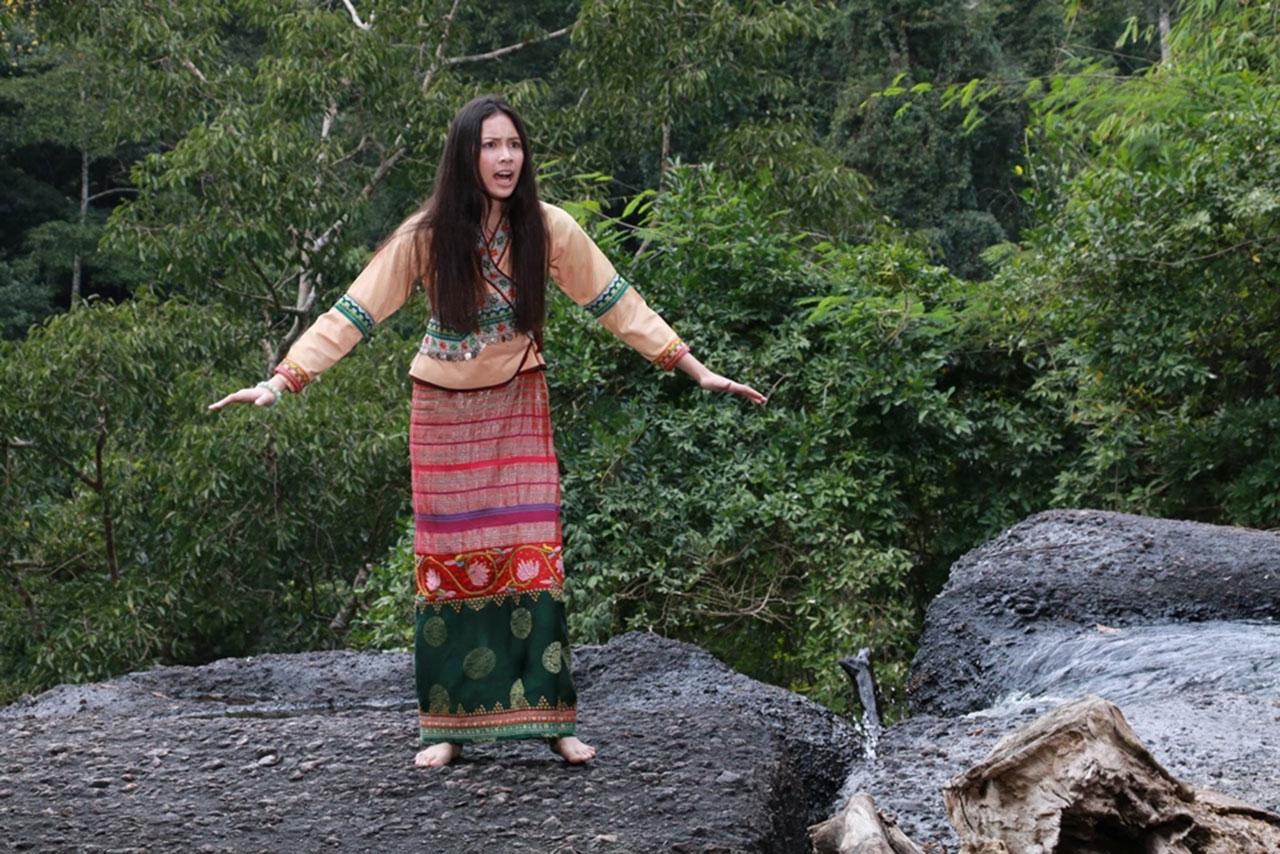 ผู้กำกับฯ ประเดิมตอนแรกกันในป่า กับฉาก “เจ้านันตะทร” (อ้น-รติพงษ์ ภู่มาลี) โดน “สะมะแอ” (ชาลี กรรณสูต) กับ “แสนไท” (พบศิลป์ โตสกุล) สองพ่อลูกก่อกบฏฆ่าทิ้ง ส่วน “เจ้านางทรายคำ” (ปิ่น-ชรินพร เงินเจริญ) กับสาวใช้ “ละเอ” (กุสุมา ตันสกุล) ก็พาลูกน้อยหนี