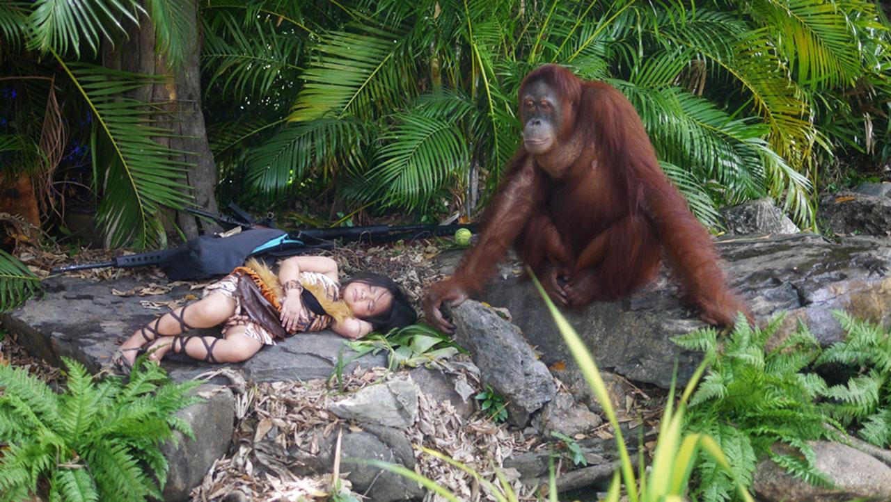 แล้วมาต่อกันที่ฉากเปิดตัวนางเอกของป่า “แม่มา” อุรังอุตังแสนรู้นั่นเอง ตอนเข้าฉากกับหนูน้อย “ชาลิสา” เจ้าลิงแสนรู้ ก็ยิ่งกว่าซุป'ตาร์ ฉากเอ็นดู “อิยะวดี” ที่เอากล้วยมาให้หนูน้อยกิน และคอยดูแลไม่ห่าง ก็ทำได้ดีรู้เรื่องไปโม้ด จน หนูน้อย “ชาลิสา” ที่แรกๆ มีกลัวๆ กล้าๆ อยู่บ้าง ก็กลายเป็นสนุกๆ ไปเลย ยิ่งพอได้เปลี่ยนชุดเหมือนทาร์ซานน้อยยิ่งอิน สนุกไปกันใหญ่