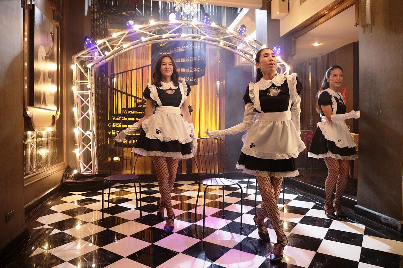 ฉากนี้ ถ่ายที่ โรงแรมเซี่ยงไฮ้ เยาวราช วันนี้ แยม ต๊งเหน่ง ต้องวอร์มร่างกายยืด เหยียด แขนขากันแต่เช้า เพราะต้องโชว์ลีลาบรอดเวย์แจ๊ส ดูครูสอนเต้นไปรอบแรก ทำเอาแยมกุมขมับ เพราะสกิลการเต้นแทบจะเป็นศูนย์ แต่เมื่อเจอแรงแซว จาก ริว บอม มิ้นท์ คริสซี่ ทำเอาสมาธิแตกกระเจิงหนักกว่าเก่า ด้านต๊งเหน่ง จัดระเบียบร่างกายได้ชนะเลิศ เพราะอินเนอร์ ลีลา ปรมาจารย์ยกนิ้วให้เลย ถ่ายจริง 3 สาว เปิดตัวได้ยั่วยวน เร้าใจ ในชุดคอสเพลย์แม่บ้าน บนรองเท้าส้นเข็ม ลุกๆ นั่งๆ โยกย้าย ส่ายขา เข้าจังหวะได้พลิ้วไหว แต่พอเจอชอตเตะขาสูงข้ามเก้าอี้เข้าไป ทำเอา ริว บอม มิ้นท์ คริสซี่ อึ้งตาแตก