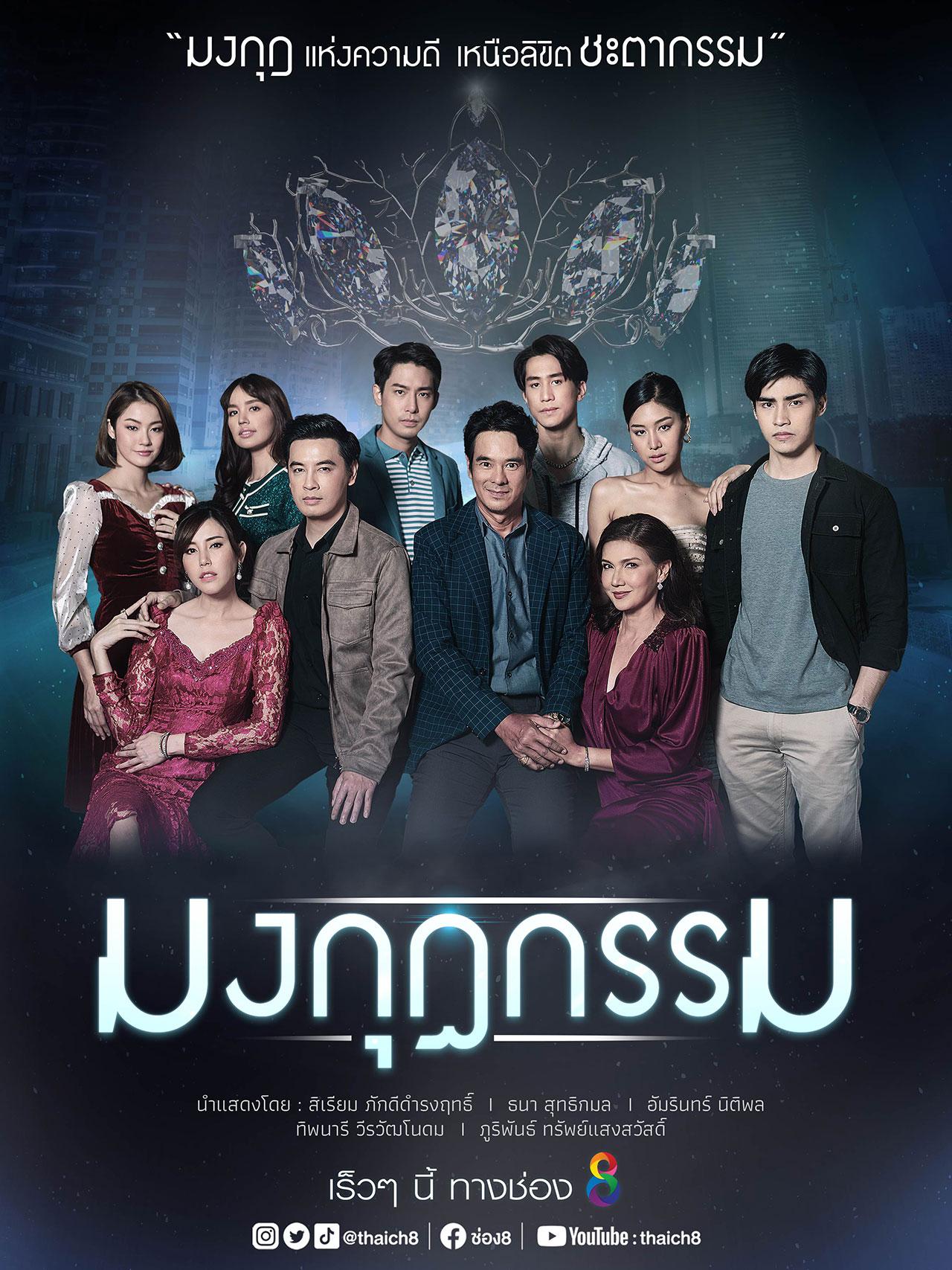 และแล้วก็ถึงคิวของละคร ดราม่าน้ำดีเรื่อ“มงกุฎกรรม” จากบทประพันธ์ดังของ สมหมาย เลิศอุฬาร โดยผลงานของผู้จัดคนเก่ง “เอ๊ะ- อิศริยา” เรื่องราวความดราม่าของผู้หญิงที่ชื่อจันทร์ กับเหตุการณ์ต่างๆ ที่เธอต้องเอาชนะและผ่านมันไปให้ได้ แค่ดีกรีของผู้จัดที่ยืนหนึ่งเรื่องละครดราม่า ก็การันตีแล้วว่าจะออกมาเข้มข้นถึงใจแค่ไหน อีกทั้งเรื่องนี้ยังได้ “แอน-สิเรียม” คืนสังเวียนมารับบทดราม่าสุดรันทดอีกครั้ง ประชันบทบาท กับ “อ่ำ-อัมรินทร์” ที่โคจรมาร่วมงานกันที่หน้าจอช่อง 8 เป็นครั้งแรก เสริมทัพด้วยนักแสดงมาฝีมือ อาทิ ออย-ธนา, ฟิล์ม-ฉัตรดาว, แพร-พิไลรัมภา, ปรัชญ์ อิทธิชัยเจริญ, ป้าจิ๊-อัจฉราพรรณ, จอย-รฤมล ฯลฯ พร้อมกันนี้ยังได้เห็นพระเอกหนุ่มป้ายแดง “ภูมิ-ภูริพันธ์” ขึ้นแท่นพระเอกเต็มตัวเรื่องแรก ประกบคู่กับนางเอกหน้าหวาน “น้ำตาล-ทิพนารี” และอีกทั้งเรื่องนี้ยังได้เห็นสองนิวเจนดวงใหม่ของช่อง 8 อย่างหนุ่ม “ไกด์-กันตพล” และ สาว “ซาร่า-ชัชชญา” มาชิมลางละครเรื่องแรกกับบทบาทรุ่นลูกสุดเข้มข้นประกบนักแสดงมืออาชีพมากมาย ด้วยภาษีของผู้จัดเอ๊ะ ที่ยืนหนึ่งเรื่องละครดราม่า บวกกับการตกปากรับคำของนักแสดงรุ่นใหญ่แอน-สิเรียม ที่กล้ามาเล่นบทบาทสุดหินนี้ ก็การันตีแล้วว่าเรื่องนี้ต้องไม่ธรรมดาแน่นอน เตรียมผ้าซับน้ำตาความ ดราม่า และเฝ้าจอทางช่อง 8 รอไว้ได้เลย