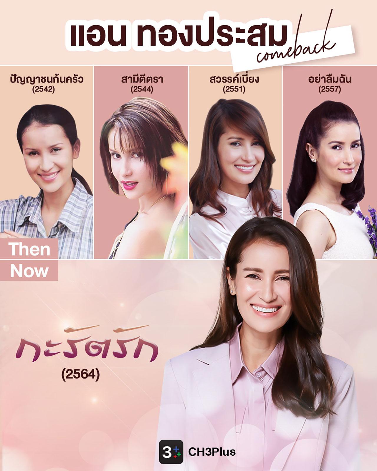 เริ่มจาก แอน ทองประสม นางเอกยอดฝีมือเจ้าของฉายาเจ้าหญิงแห่งวงการบันเทิง คืนจอให้แฟนละครหายคิดถึงใน กะรัตรัก ประกบพระเอกน่ารัก ฝีมือเลิศ เจมส์ จิรายุ พร้อมด้วย ดอม เหตระกูล, แซม ยุรนันท์, แพร์ พิชชาภา และ เม นิศาชล ตลอดระยะเวลา 29 ปีที่ช่อง 3 แอนมีผลงานหลากหลายรสชาติ ทั้งดราม่า ฮา แซ่บ ดุเดือด ครบรส CH3Plus ขอแนะนำละครในแต่ละยุคของเธอให้แฟนๆ ได้รับชมกัน ไม่ว่าจะเป็น ปัญญาชนก้นครัว ในบท ชะเอม บทฮาๆ ของสาวใช้ที่ปลอมตัวมาทำภารกิจ กั้ง สาวแซ่บสุดมั่นจาก สามีตีตรา ที่ทำให้แฟนๆ ได้เห็นแอนในลุคเปรี้ยวจี๊ดถึงใจ หรือจะซับน้ำตากับดราม่าของ นาริน ใน สวรรค์เบี่ยง และบีบหัวใจไปกับ สุริยง หรือ แม่หนูเล็ก หญิงสาวที่ต้องทรมานกับคำว่ารักอย่างหลีกหนีไม่ได้ใน อย่าลืมฉัน