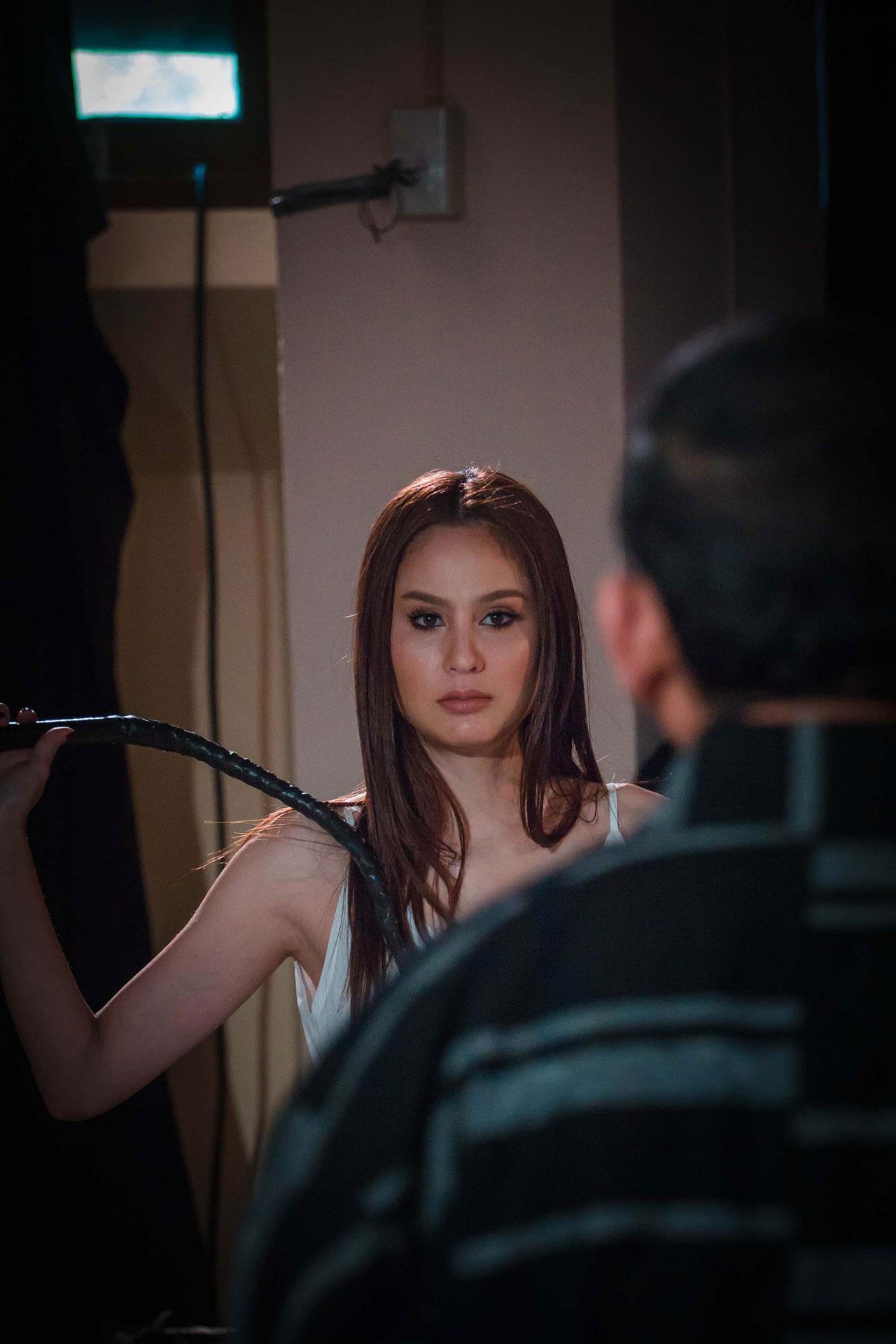 ฉากนี้บอกเลยว่าเบื้องหลังฮามากๆ เพราะขวัญต้องใช้แซ่ฟาดหลังเจี๊ยบ เพื่อยั่วยวน ขณะที่เจี๊ยบก็ต้องนอนคว่ำร้องโอดโอยถูกอกถูกใจ พอผู้กำกับสั่งคัต! ทุกคนในฉาก รวมถึงทีมงานถึงกับฮาลั่น แต่ภาพเบื้องหน้าในละครจะเป็นยังไงนั้น ต้องไปลุ้นกันในละครจ้า