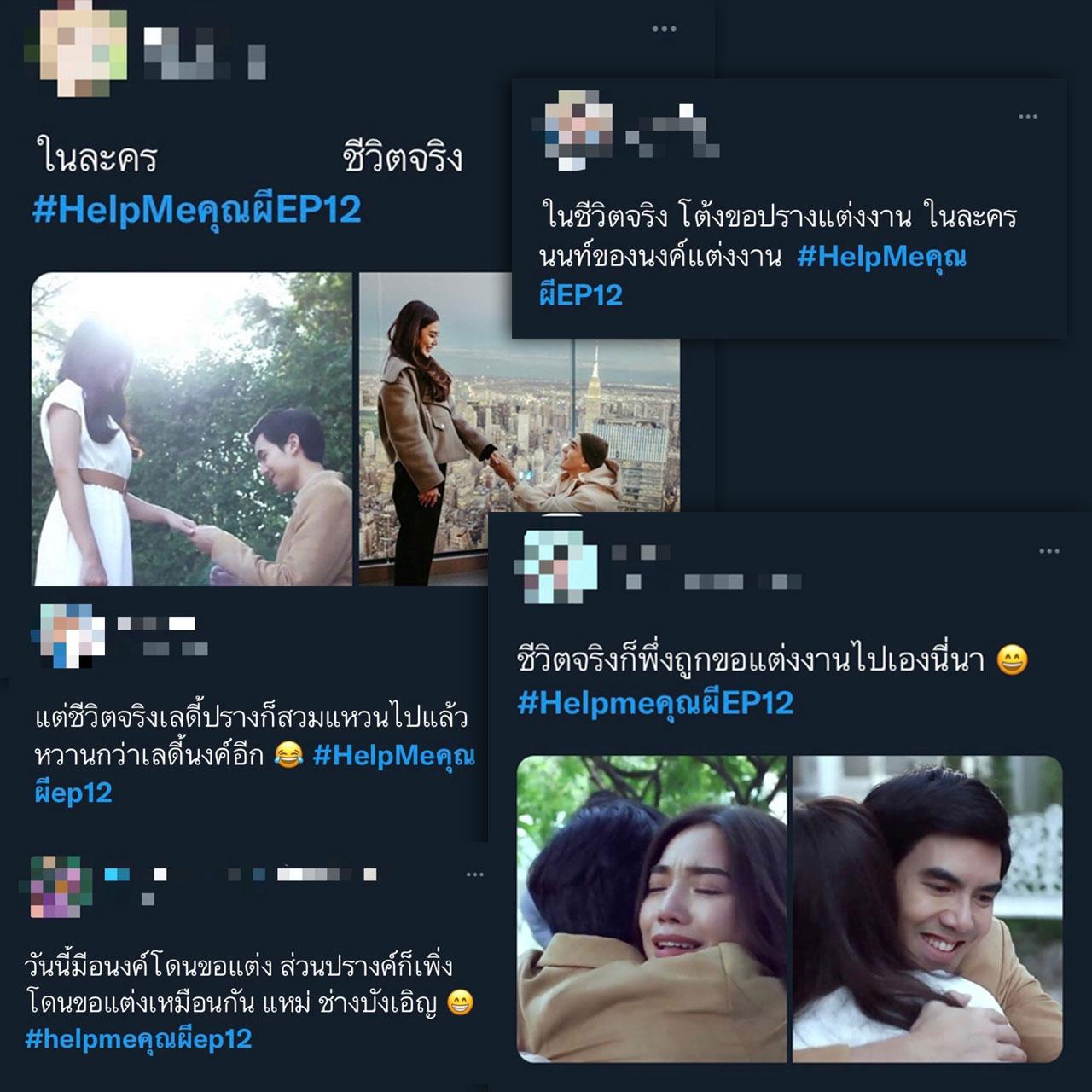 ขอแสดงความยินดีกับสาวสวย “ปราง กัญญ์ณรัณ” ที่เพิ่งถูกหวานใจหนุ่ม “โต้ง Twopee” คุกเข่าขอแต่งงานไปเมื่อไม่นานมานี้ เรียกได้ว่าเหล่าเพื่อนพ้องดาราและแฟนคลับต่างแห่ไปแสดงความยินดีในไอจีของเธอกันเพียบ ล่าสุดผลงานละครของเธอที่กำลังออนแอร์อยู่บนหน้าจอช่อง 3 อย่าง “Help Me คุณผีช่วยด้วย” ก็จังหวะเหมาะเจาะมากใน Ep.12 ได้มีฉาก อานนท์ (เต๋อ ฉันทวิชช์) เซอร์ไพรส์ขอ อนงค์ ที่รับบทโดยสาว “ปราง” แต่งงาน บอกเลยว่างานนี้ชาวเน็ตแซวกันไม่หยุดว่าในละครโดนขอแต่งงาน และในชีวิตจริงก็เพิ่งถูกขอแต่งงาน จังหวะมันดีจริงๆ
