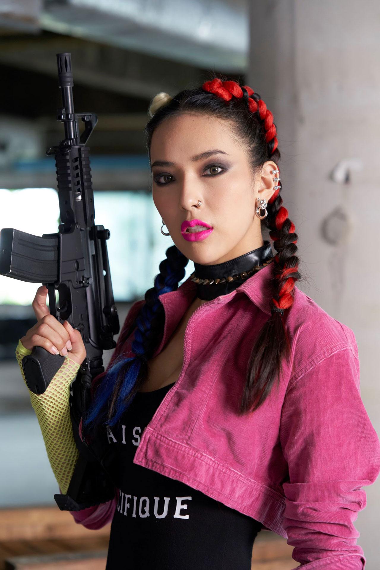 มาพูดถึงบทบาททางการแสดงในเรื่องเกมล่าทรชนกันบ้าง คาแรกเตอร์จริงๆ เป็นยังไง เธอได้พูดเอาไว้ว่า “ในเรื่องรับบทเป็น ริต้า ค่ะ เป็นนักฆ่าสาวจอมโหด สนุกกับการฆ่าเหยื่อ หลงใหลในการฆ่ามาก ทำงานทุกอย่างเพื่อแลกเงิน ในเรื่องมีแฟนที่เป็นเพศเดียวกัน เขาเป็นคนเดียวที่เรารักและไว้ใจ บทนี้ไม่ง่ายเลย เพราะไม่เคยเล่นบทบู๊มาก่อน เรื่องนี้เป็นเรื่องแรก นอกจากบทบู๊ก็ยังมีเรื่องบทที่ต้องเล่นเป็นผู้หญิงรักผู้หญิง ถือว่าท้าทายตัวเราพอสมควร ต้องทำการบ้านเยอะ เป็นอีกหนึ่งบทบาทที่รอคอยค่ะ”