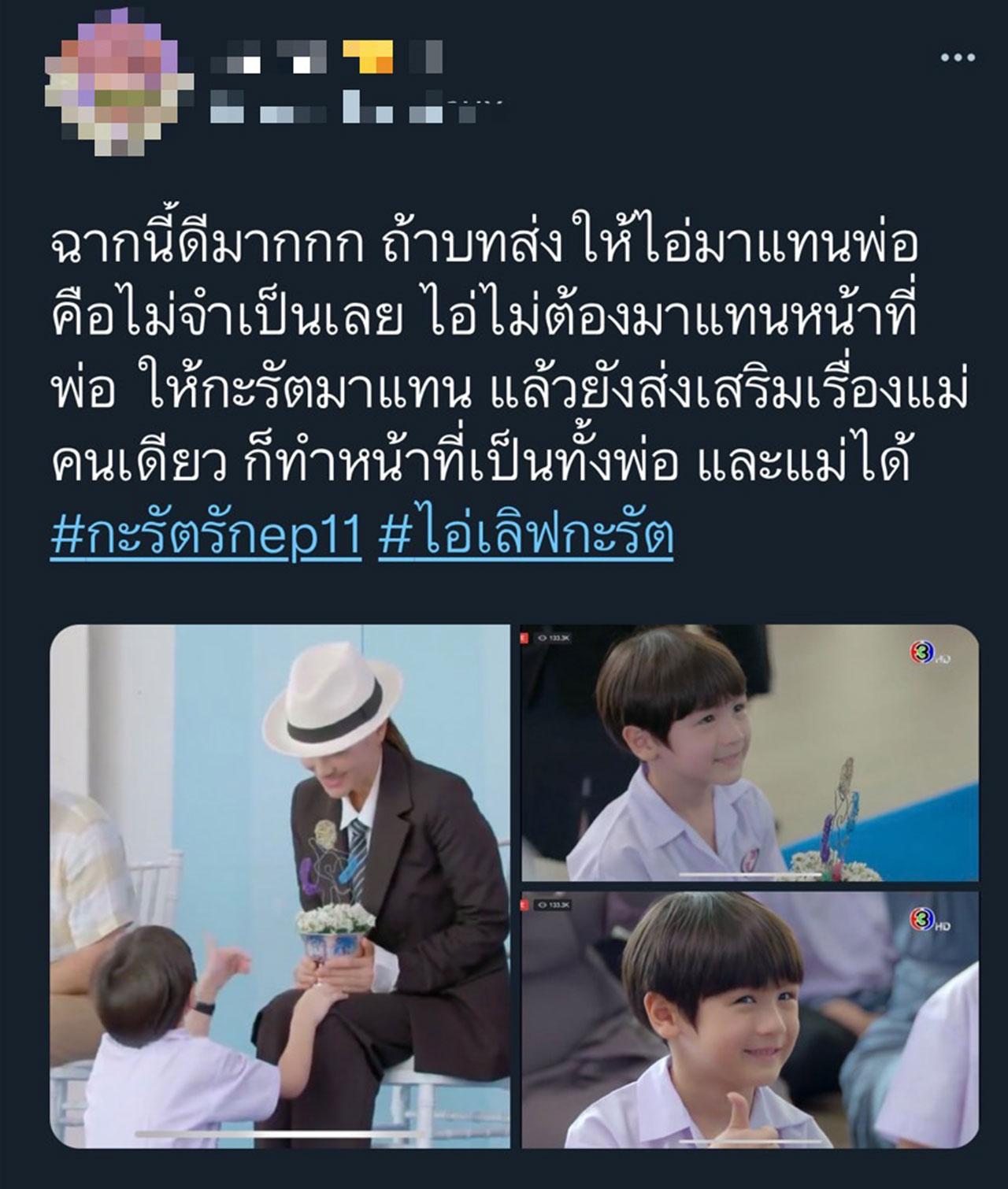 และฉากกะรัตใส่หมวกติดหนวดแต่งตัวเป็นพ่อให้ พัตเตอร์ หรือ น้องไฟซัล นากิ๊บ ลูกชายสุดที่รักเป็นฉากสะท้อนมุมหัวใจของความเป็นแม่ที่เรียกน้ำตาคนดูไปได้ไม่น้อย และฉากแม่กะรัตเสิร์ฟลูกตบรัวเซตจัมโบ้ให้เลขาฯ สายแอ๊บ นิตา หรือ เม นิศาชล ที่ยิ่งดูยิ่งสะใจ แฟนๆ ต่างเทคะแนน 10 10 10 พร้อมมอบมงและสายสะพายนักตบมือหนึ่งให้แม่ไปเลยจ้า