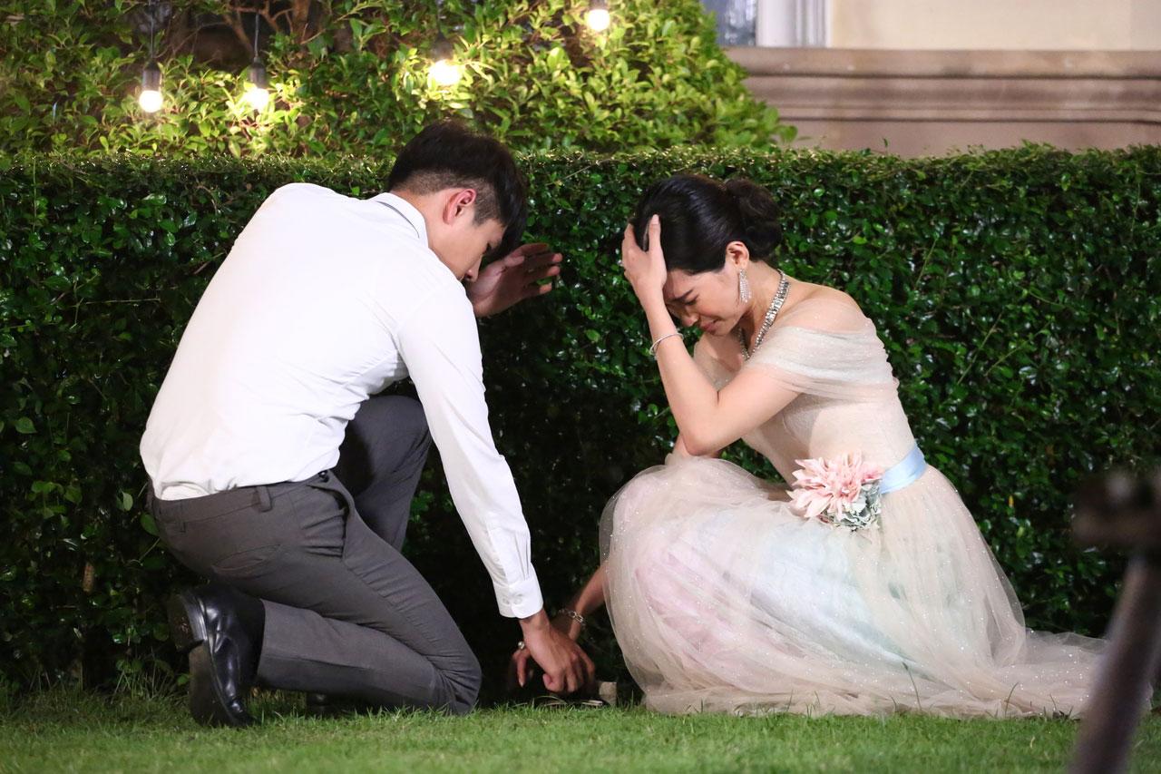 เป็นฉากที่ โชค (ทอย-ปฐมพงศ์) เผลอทำผ้าเช็ดหน้าหล่นพื้น ประจวบเหมาะกับ มรว.เพชรวสี (บิ๊นท์-สิรีธร) ที่ผ่านมาเห็นพอดี จึงช่วยเก็บแต่ทั้งคู่ดันไม่ทันระวังจนเกิดอุบัติเหตุขึ้น งานนี้ ผู้กำกับวรฐ คงคาลัย สั่งให้ทอยแสดงออกทางสายตาเต็มที่ ว่าจริงๆ แล้วตนเองรู้สึกอย่างไรกับสาวบิ๊นท์